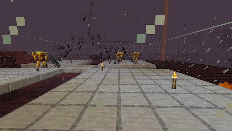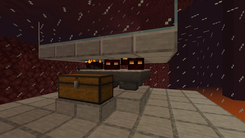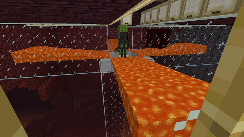 また、ネザー要塞の十字路を中心とした19×19の範囲では、不透過ブロックか上付きハーフブロックであればどんなブロックでも湧くようです。高さ方向は、もともとネザーレンガのあった高さの±3ブロック程度の範囲だけらしいです。ただ、ネザーレンガのほうが湧きやすいという情報もあります。