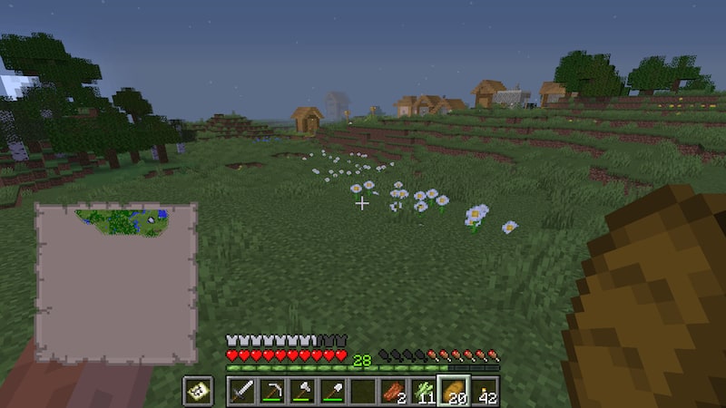 村は1つ見つけてはありますが拠点から少し遠い位置にあって不便なので、近くに村がないか一応探しに行きます。以前は拠点の北側を探したので、今日は南側へ。