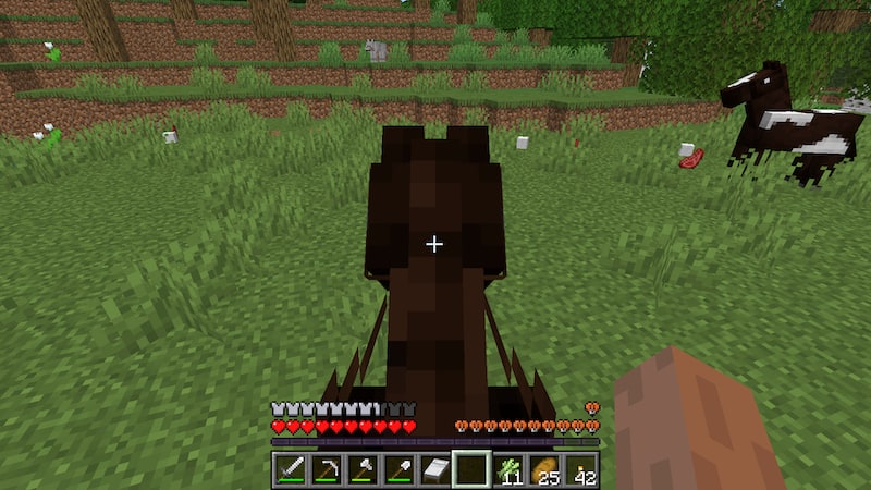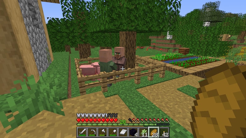 村の中のチェストを開けてみると鞍を発見。廃坑では見つけられなかったのでありがたいです。