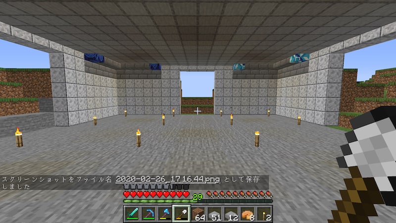 まだダイヤのシャベルを作ってないので、とりあえず拠点のところだけを整地しました。