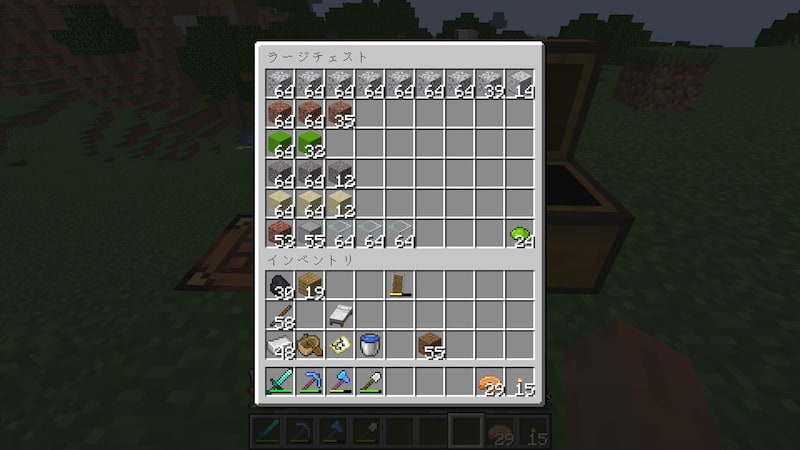 一応、拠点の材料はこんな感じ。一気に仕上げるつもりはなく、とりあえず倉庫的なものができればいいという考えなので、足りない材料は適時取りに行きます。
