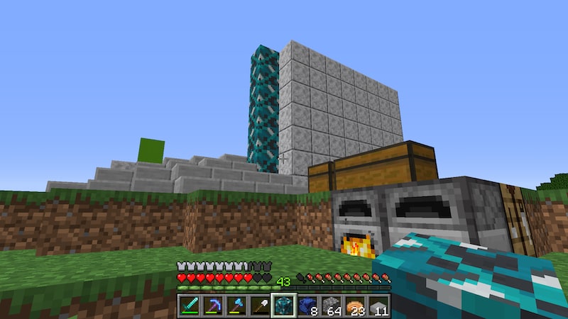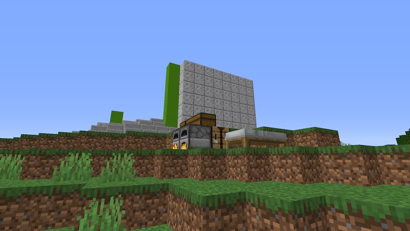 拠点をどういう形にするのかはある程度頭の中で出来上がっていますが、どのブロックを使うかはまだ決まっていません。今回は普段はほとんど使うことのない、黄緑色のコンクリートブロックを使ってみることにしました。