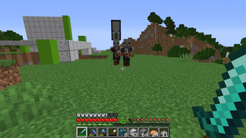 いろいろ準備してたら、いつの間にか略奪者が近くに!盾を装備してなかったのでかなり焦りました。