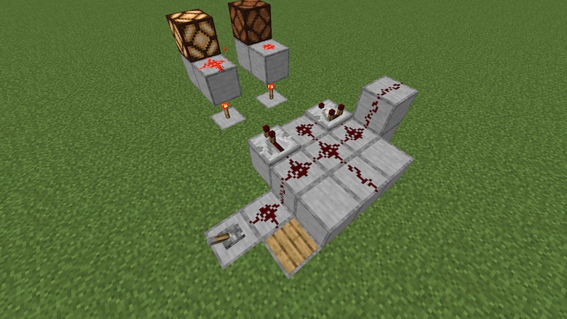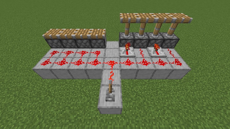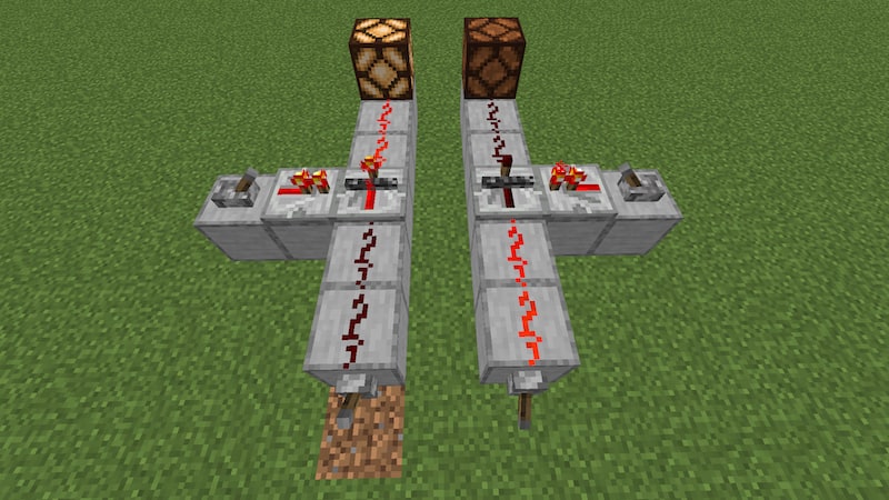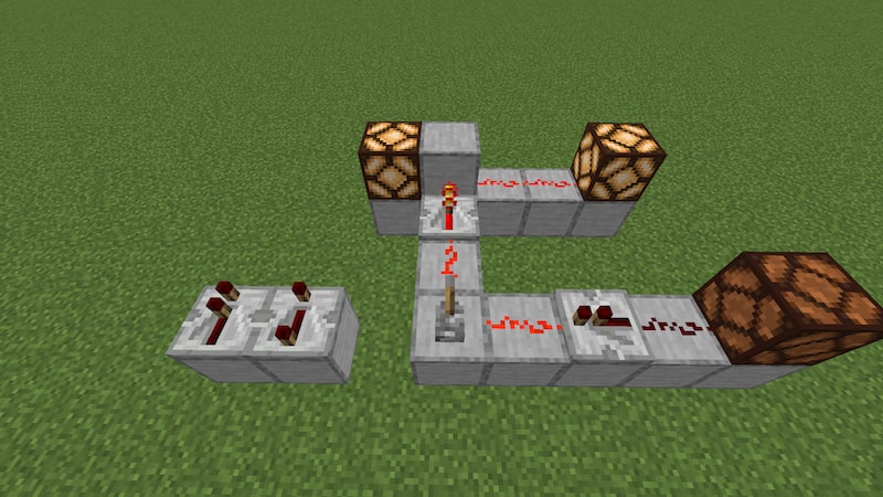 信号が入力されてから出力されるまでに1レッドストーンティック(0.1秒)の遅延が発生します。