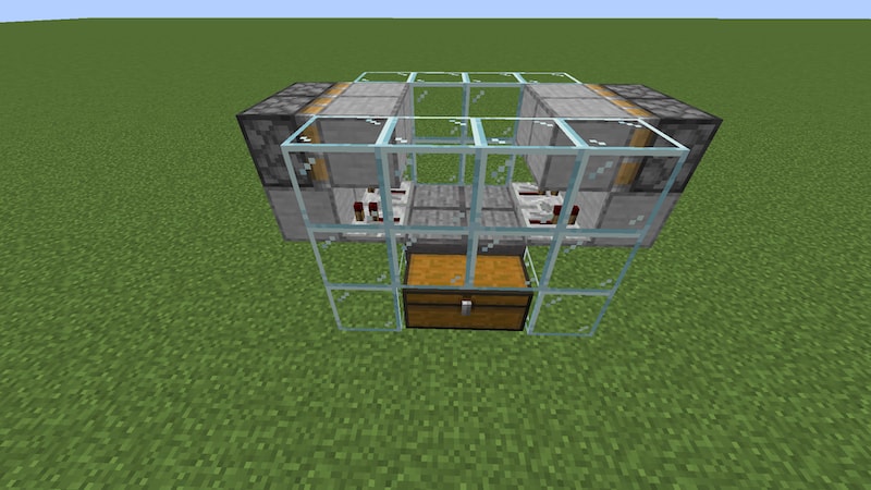 ピストンでダメージを与える方法です。経験値トラップもできますが、上の画像はアイテム回収用です。感圧板の上に乗るとピストンが作動して、ブロックに埋め込まれてダメージを受けるものです。