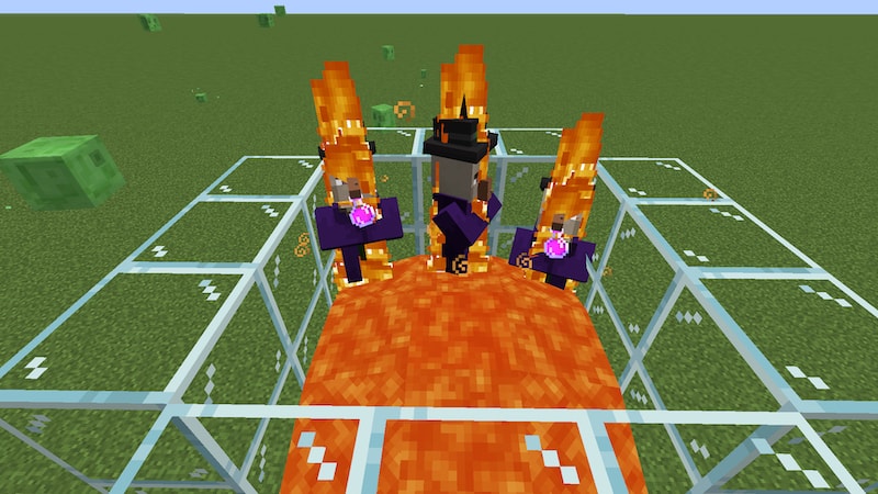 フェンスゲートや看板などを敷き詰め、その上に溶岩を流して溶岩のダメージで倒す方法です。経験値用にできないことはないですがダメージの調整が難しいので、主にアイテム回収用となります。
