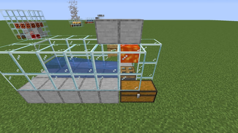 ちなみに、フェンスゲートの上に燃えないブロックを置かないとフェンスゲートは燃えます。ついでに書いておくと、溶岩より下にあるブロックは燃えないみたいです。