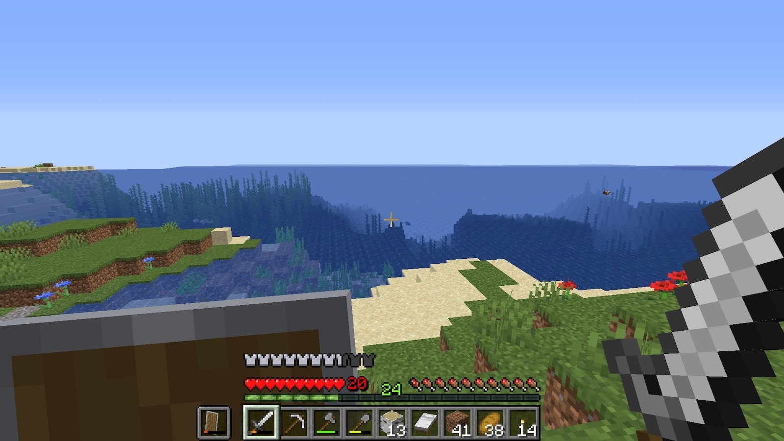スポーン地点の近くに海はもうないので、2〜3000ブロックの移動をしないとダメみたいです。