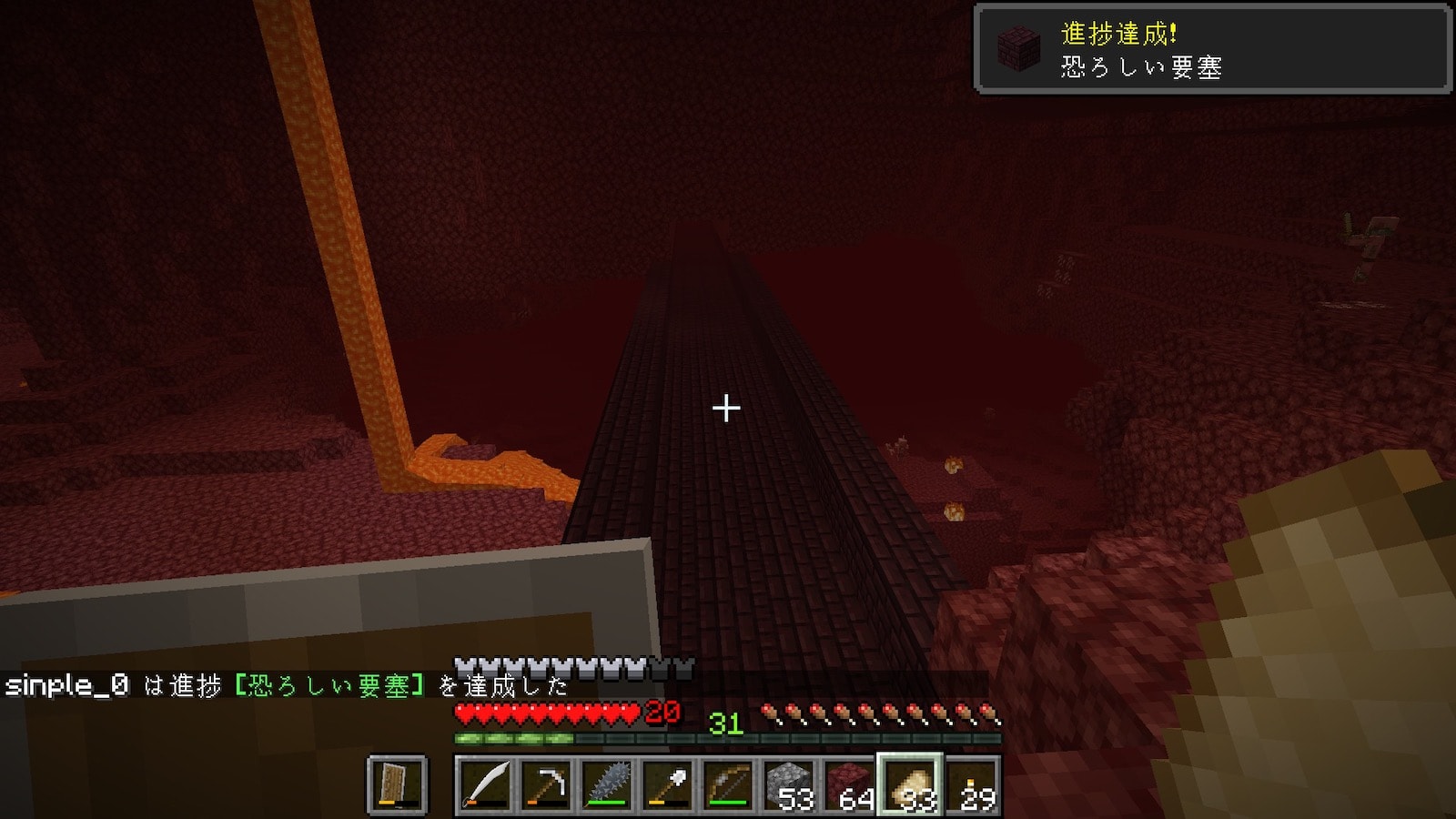 ネザー要塞を探すのにかなり時間がかかりましたが、ゲートの直ぐ側にありましたwネザーあるある?