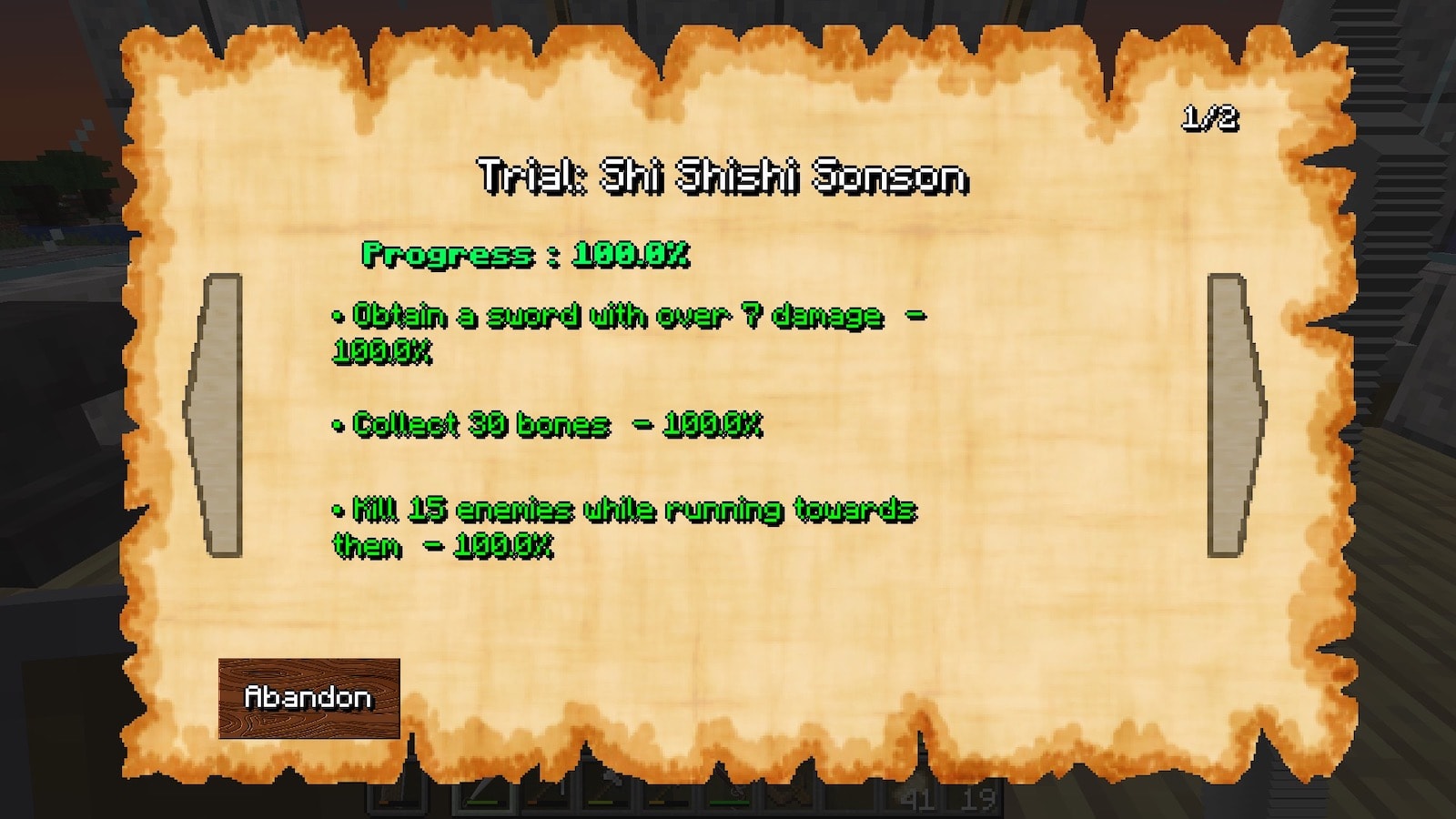 早速試練を与えてくれた剣士に報告しに行きましたが、連打してたらバグったみたいです。獅子歌歌はクリアしたはずなのに使えず、また試練が受けられるようになっていて、試練を受けてみるとすべて100%になっています。