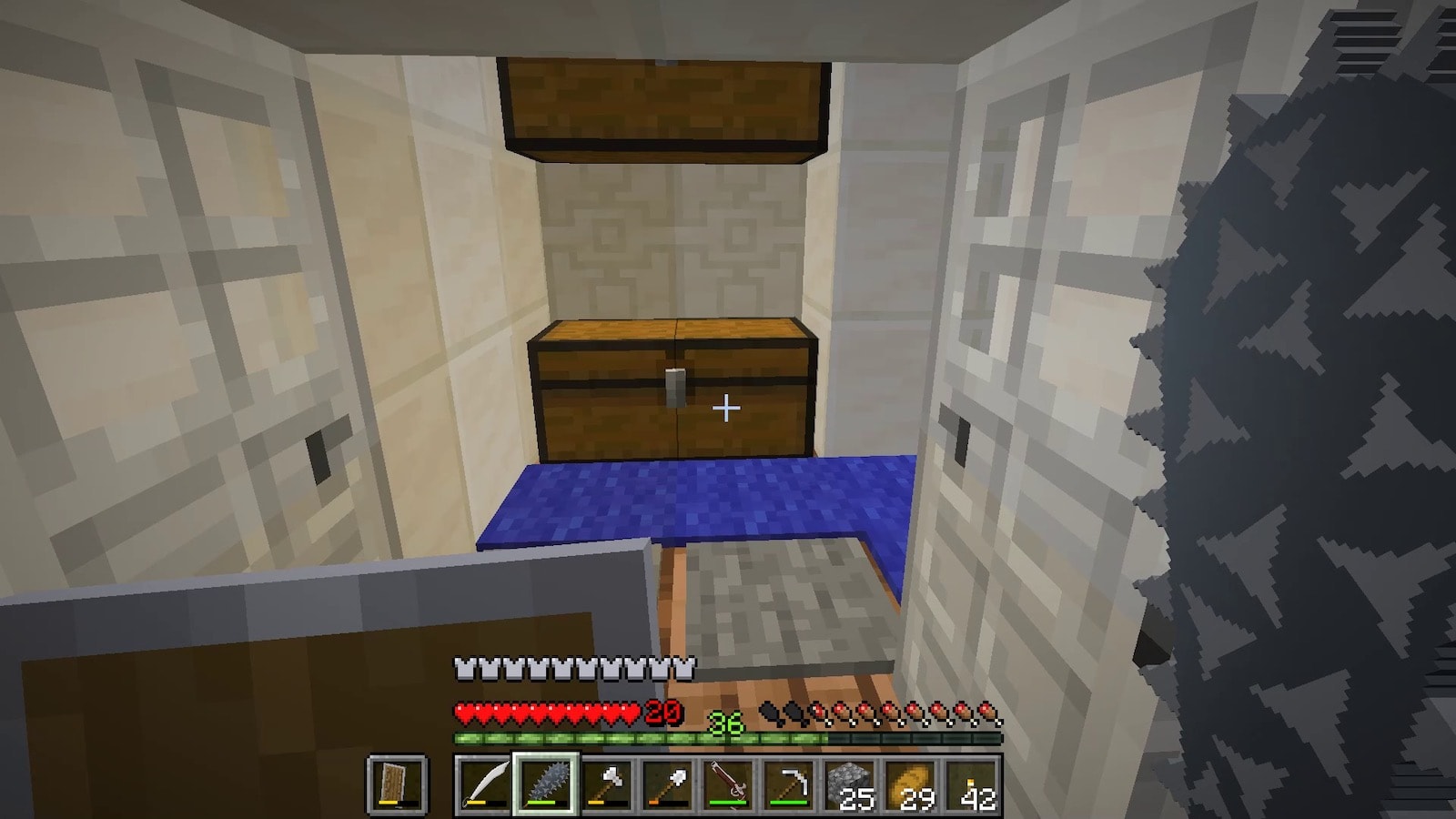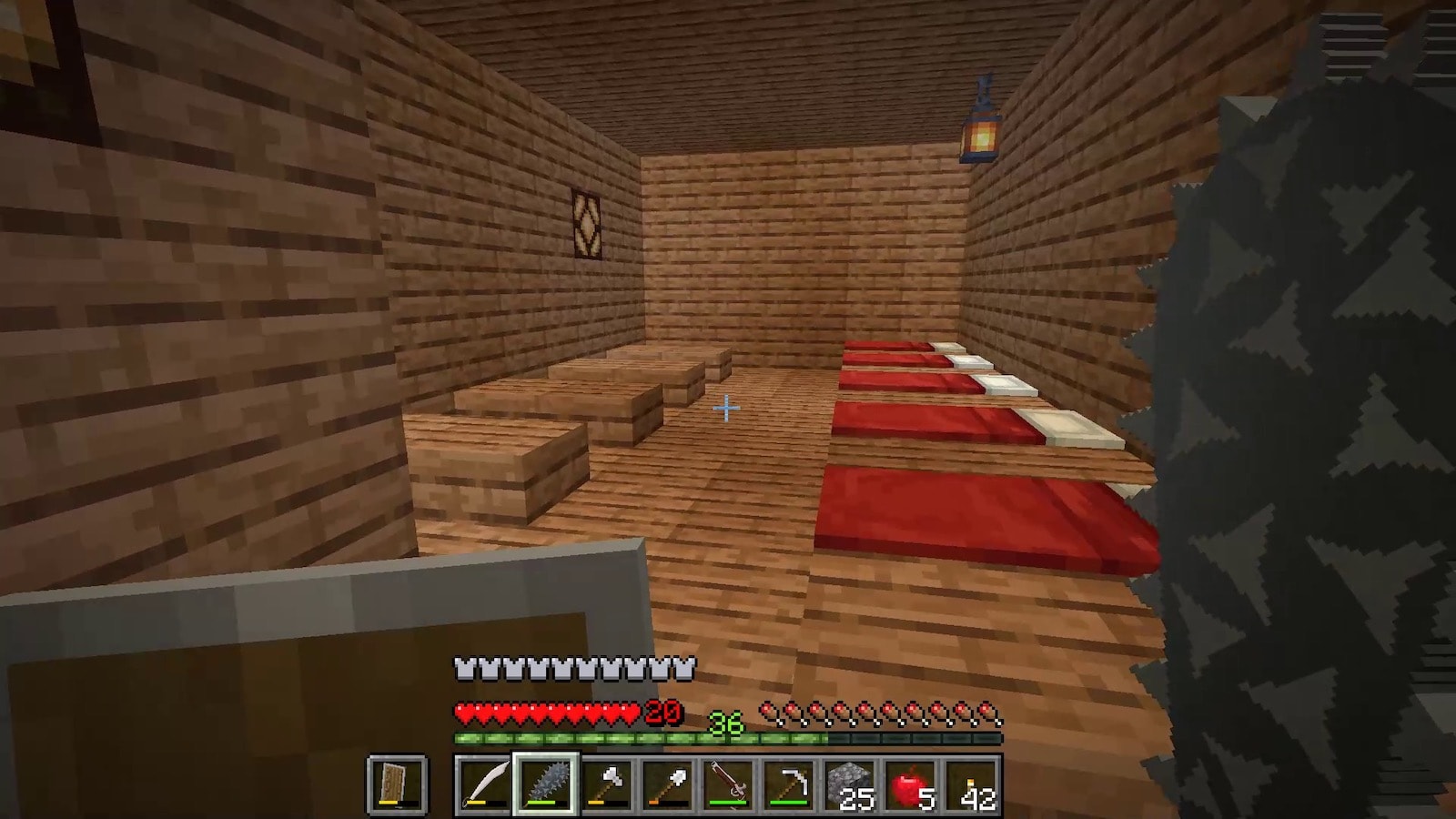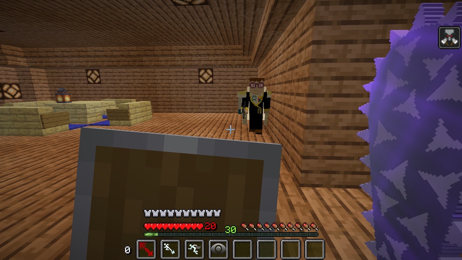 前回ネザーでブレイズロッドを手に入れたので、エンダーチェストを作りましたが、シルクタッチがないので結局使い物にならないことに気がつきました。シルクタッチをつけるのにエンチャントテーブルが必要で、エンチャントテーブルは作れますが本棚がないので、村を訪れることに。