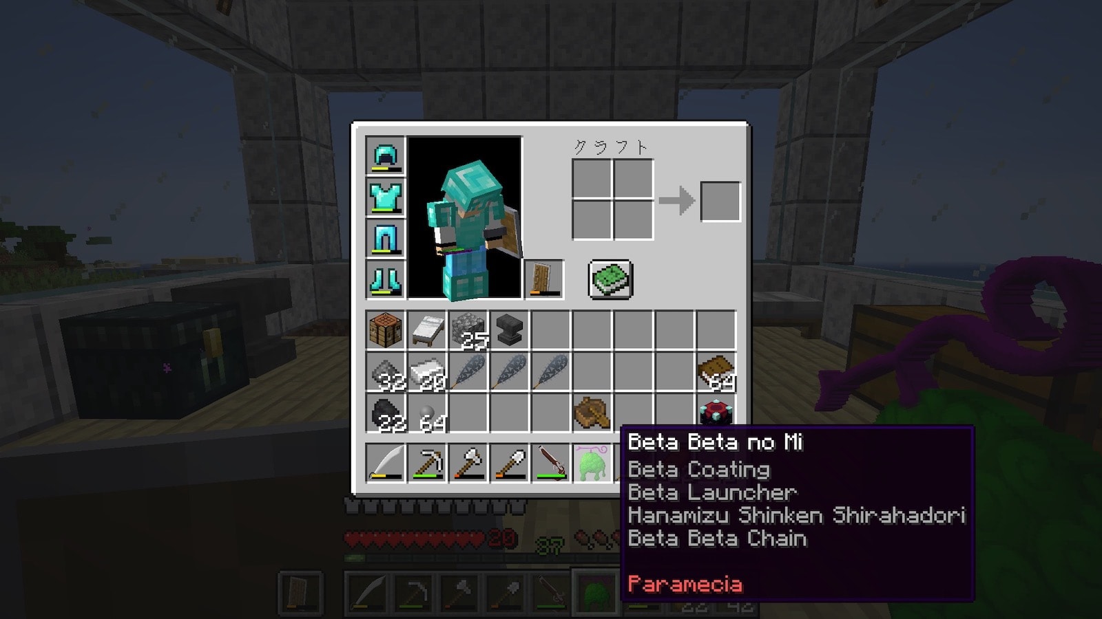 前回は、2つ目の悪魔の実を発見しましたがホルホルの実だったので再び保留。ダイヤ防具とエンダーチェストを作るためにブランチマイニングしてたらなんとポーネグリフを発見。でもどうしたら良いのかわからずこちらも保留。