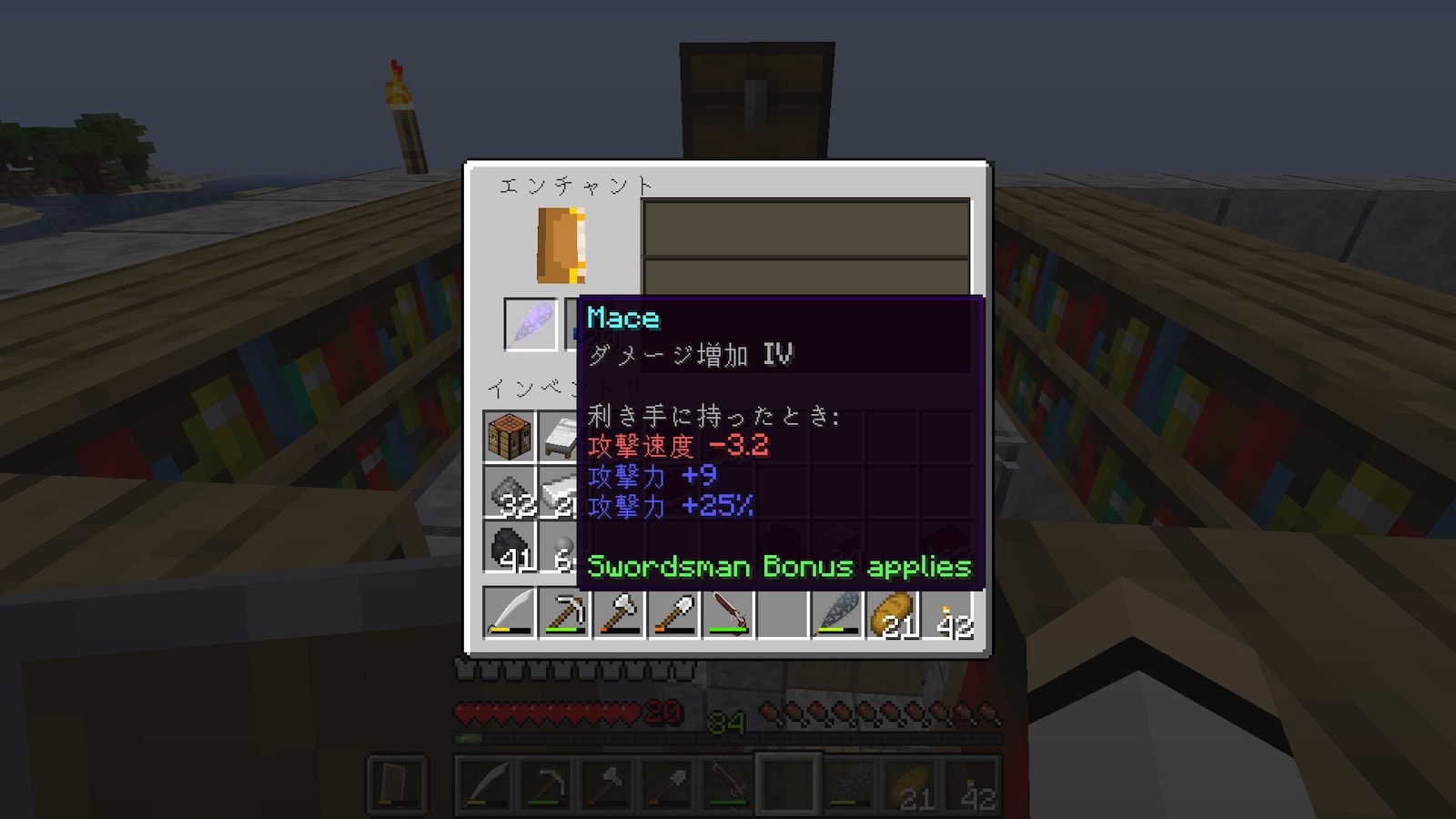 エンチャントテーブルを設置しました。場所がないので屋上に。