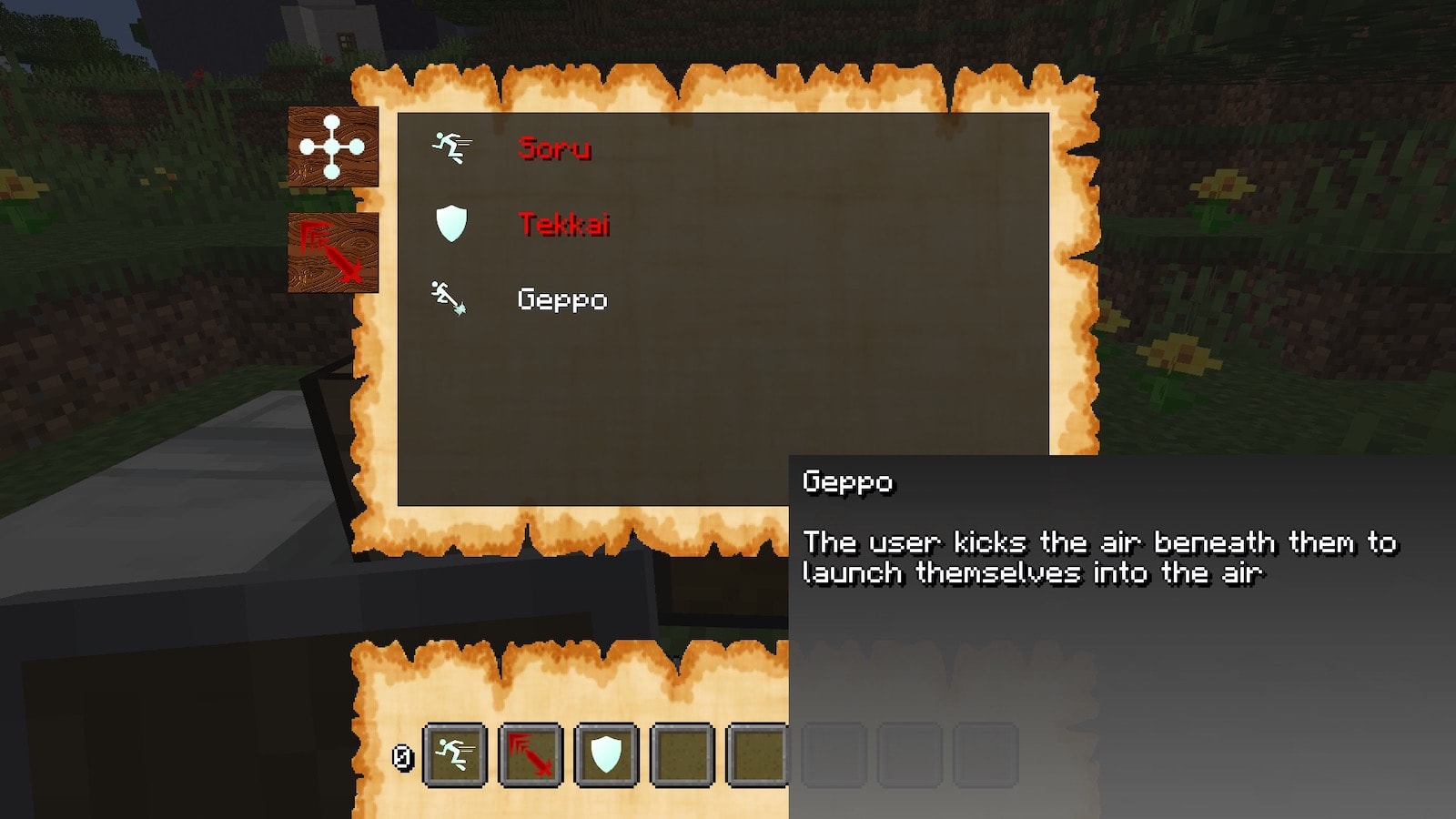 月歩を使うと高くジャンプでき、最大3回連続で使用できます。落下ダメージは無効になり、着地するとクールタイムに入ります。移動にめっちゃ便利です。