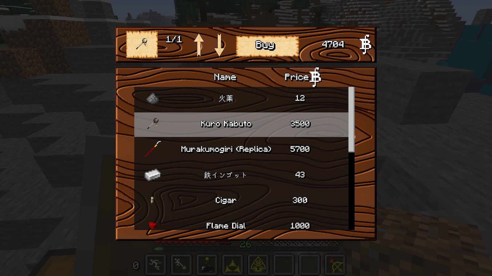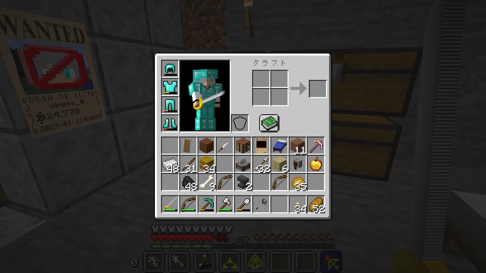 前回は、海軍のキャンプを襲いまくってたらキャプテンに一撃でやられ全ロス。ブランチマイニングでダイヤ防具一式そろえ、エンチャントテーブルも作成。スナイパーって弱いのかな〜と感傷に浸っていると「悪魔の実を食べればいいんだ」というこのModのメイン機能を思い出しましたw