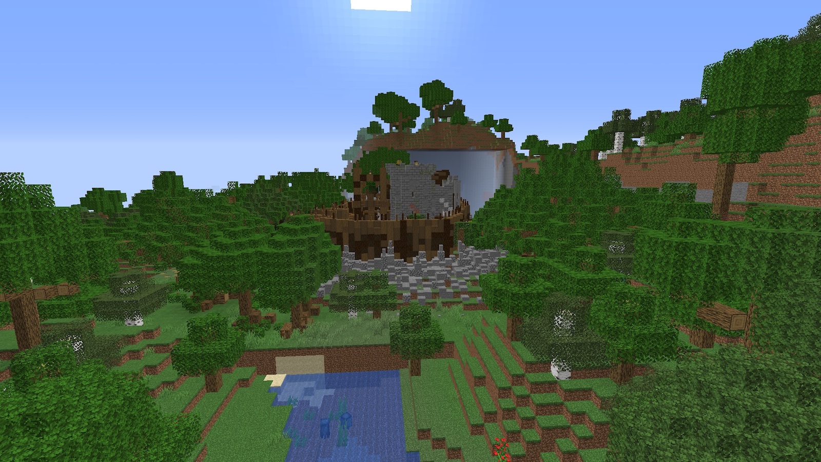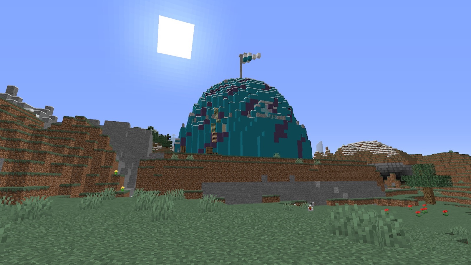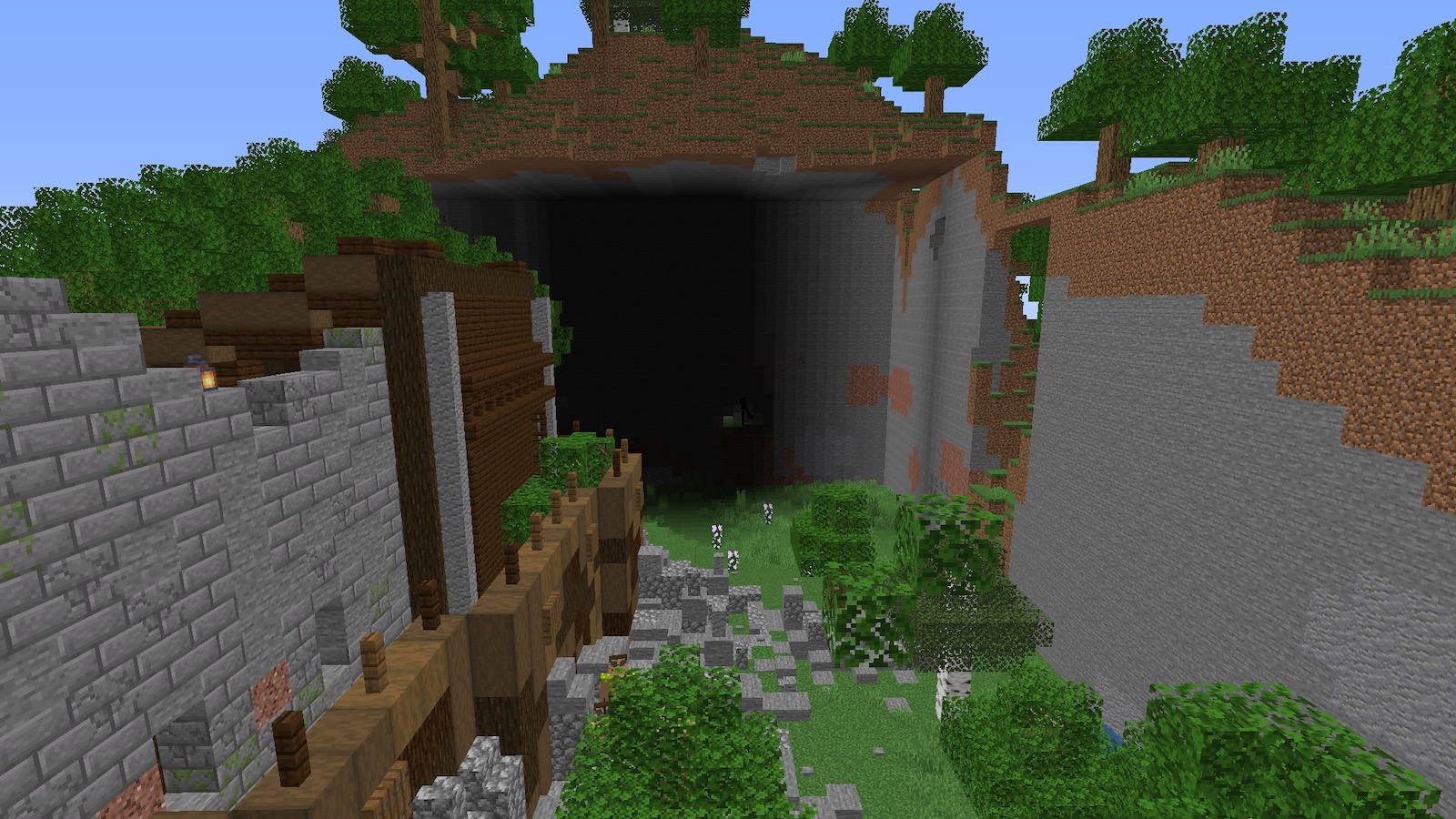 奥に大穴が空いていたので、何かあるのかなぁと思いましたが、特に何もありませんでした。この建造物を生成したときにえぐられたんだと思います。