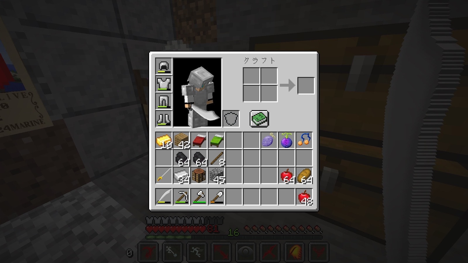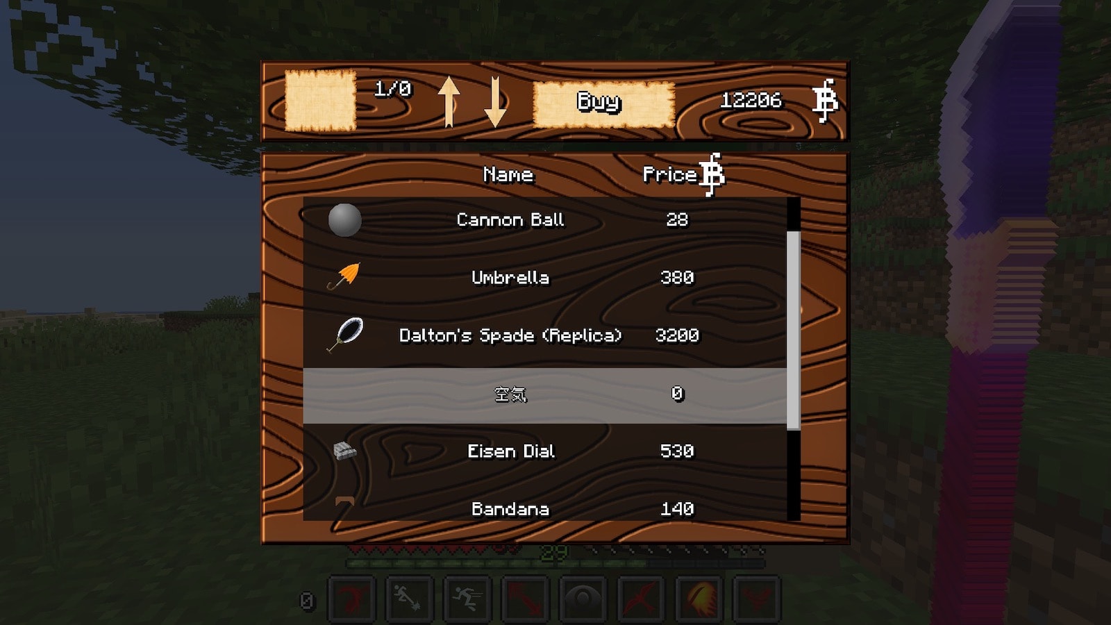 なんの変化もないので我慢できなくなり、設定で道力が上がりやすいようにこれまでの10倍に変更し、商人のスポーン確率も上げました。悪魔の実の確率の設定は見つからなかったのでそのままです。