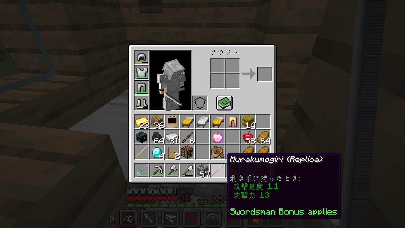 そして白ひげのなぎなた「むら雲切」も手に入れました。攻撃速度は少し低いですが、攻撃力13はめちゃくちゃ強いです。