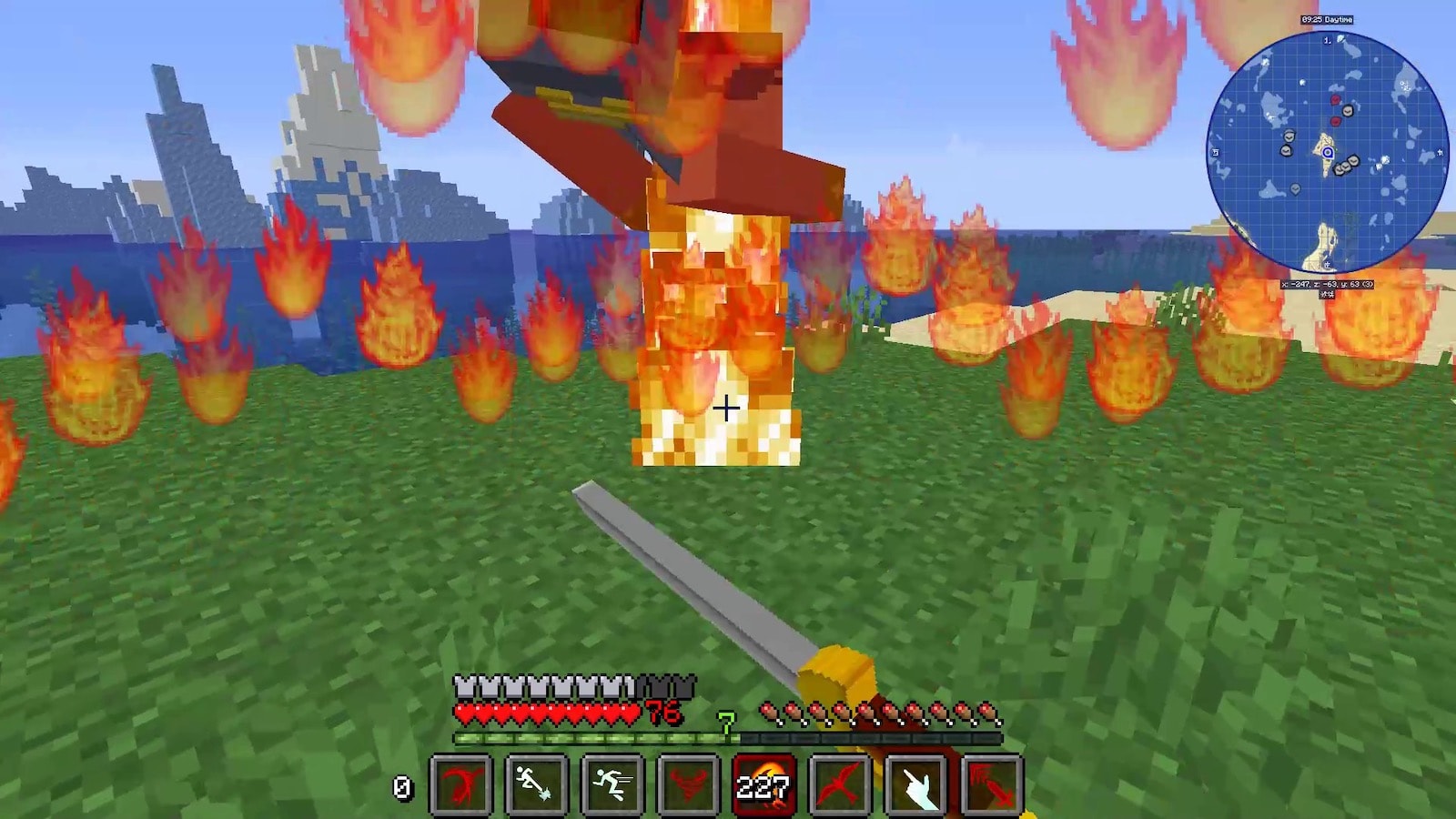 ということで自分を燃やして体力を削りながら敵を倒していたら、