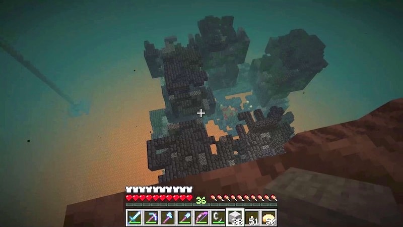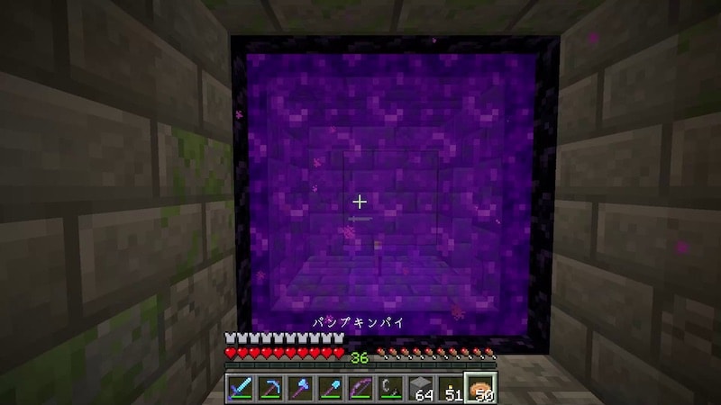 金装備を忘れたので、一旦オーバーワールドに戻ることに。エンダーチェストに入っていたのになぜか戻ってしまいました。