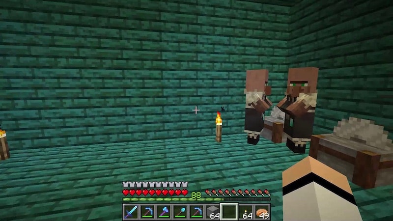 エンドポータルを探していると、村を発見しました。かなり危険な村です。