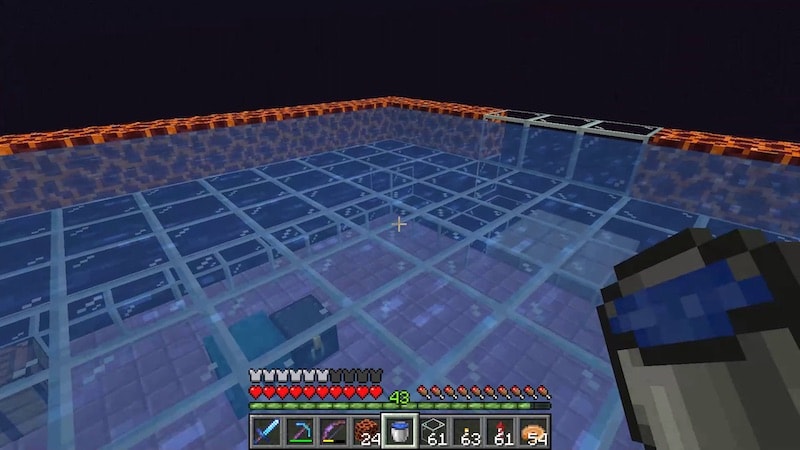 待機場所の上にガラスの天井を作り(ガラスじゃなくても良い)、縁をマグマブロックで囲って、水を敷き詰めます。