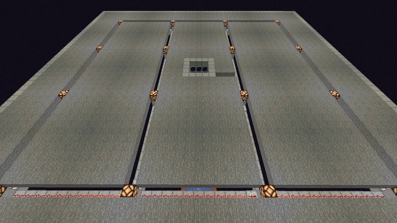 溝があるところは、これからレッドストーン回路を作る場所で、松明が置いてあるところは、レッドストーンランプを設置する場所です。レバーでオン・オフできるようにします。