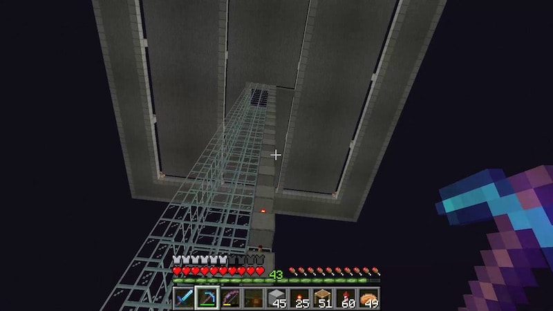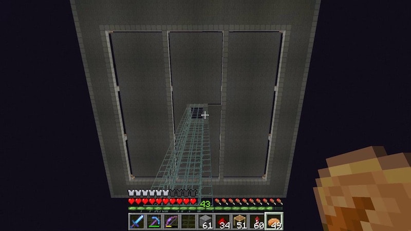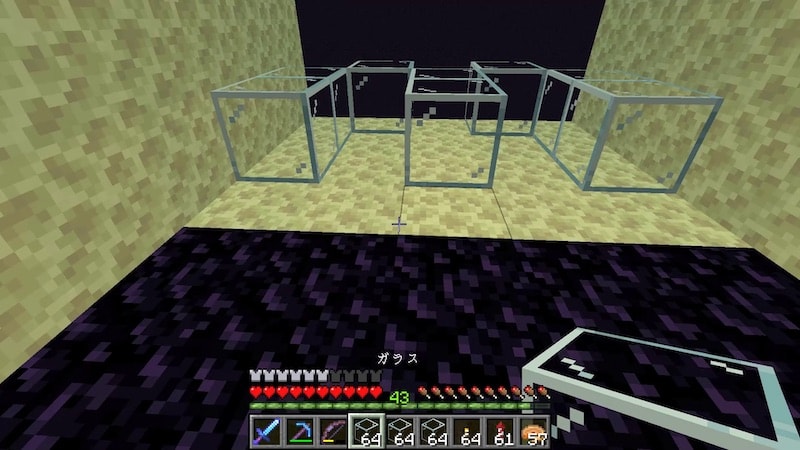 エンダーマンが落下してくるところを、Y243までガラスで囲っていきます。Y243は滑らかな石にしましたが。