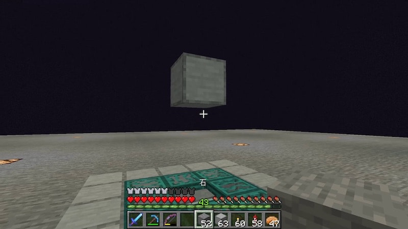 この3マス上のブロックに、エンダーマイトを召喚します。