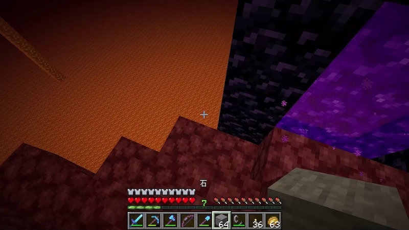 このワールド初ネザーです。陸の端っこに出ました。こわっ!