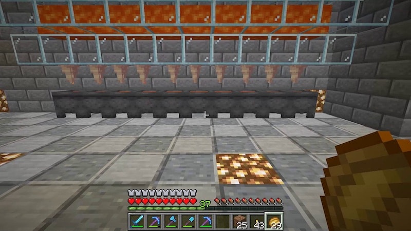 鍾乳石を使った溶岩生成装置を10個作りました。かまど2つだとこれくらいあれば十分です。