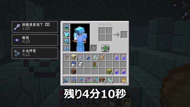 ポーションの残り時間を見たら、4分10秒でした。