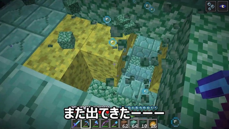 海底神殿のブロックを回収していたら、スポンジ部屋を発見。