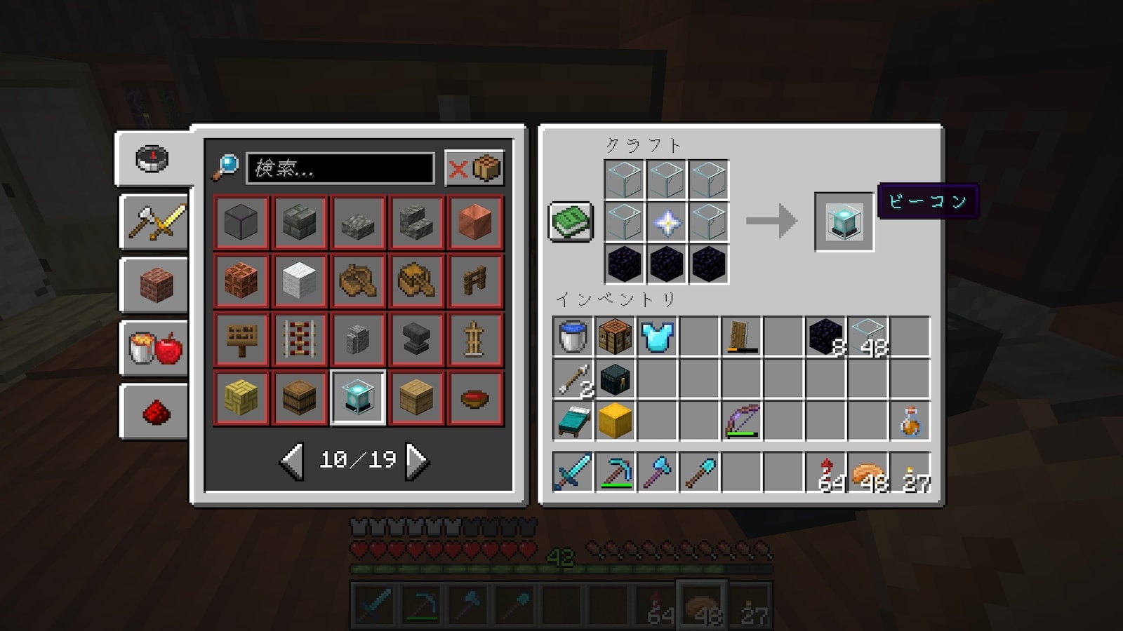 無事にウィザーを倒してネザースターを手に入れたので、ビーコンを作りました。
