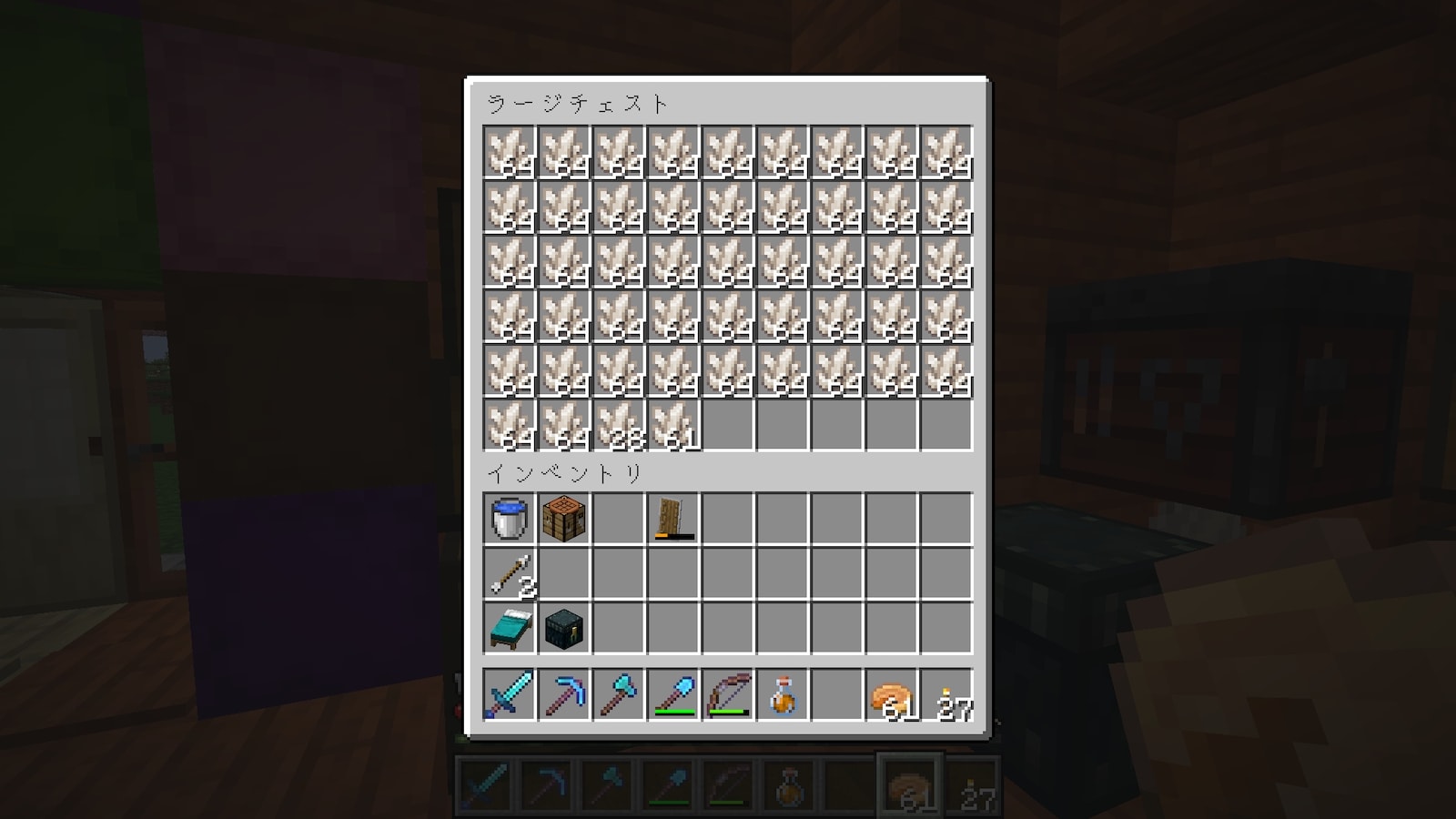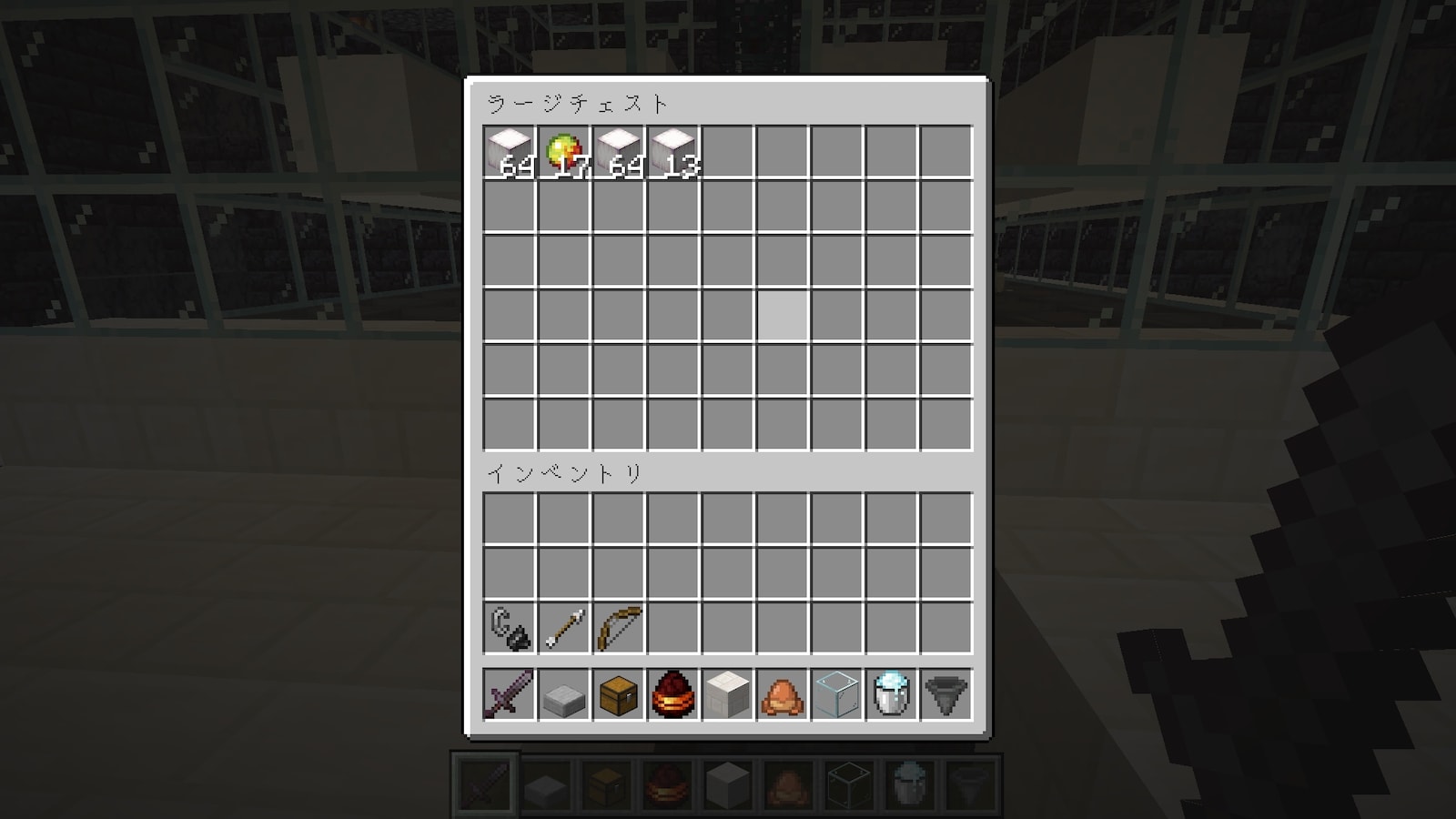 ただし、クォーツブロックを集めるなら村人との交易のほうが圧倒的に楽です。次からはそうします。