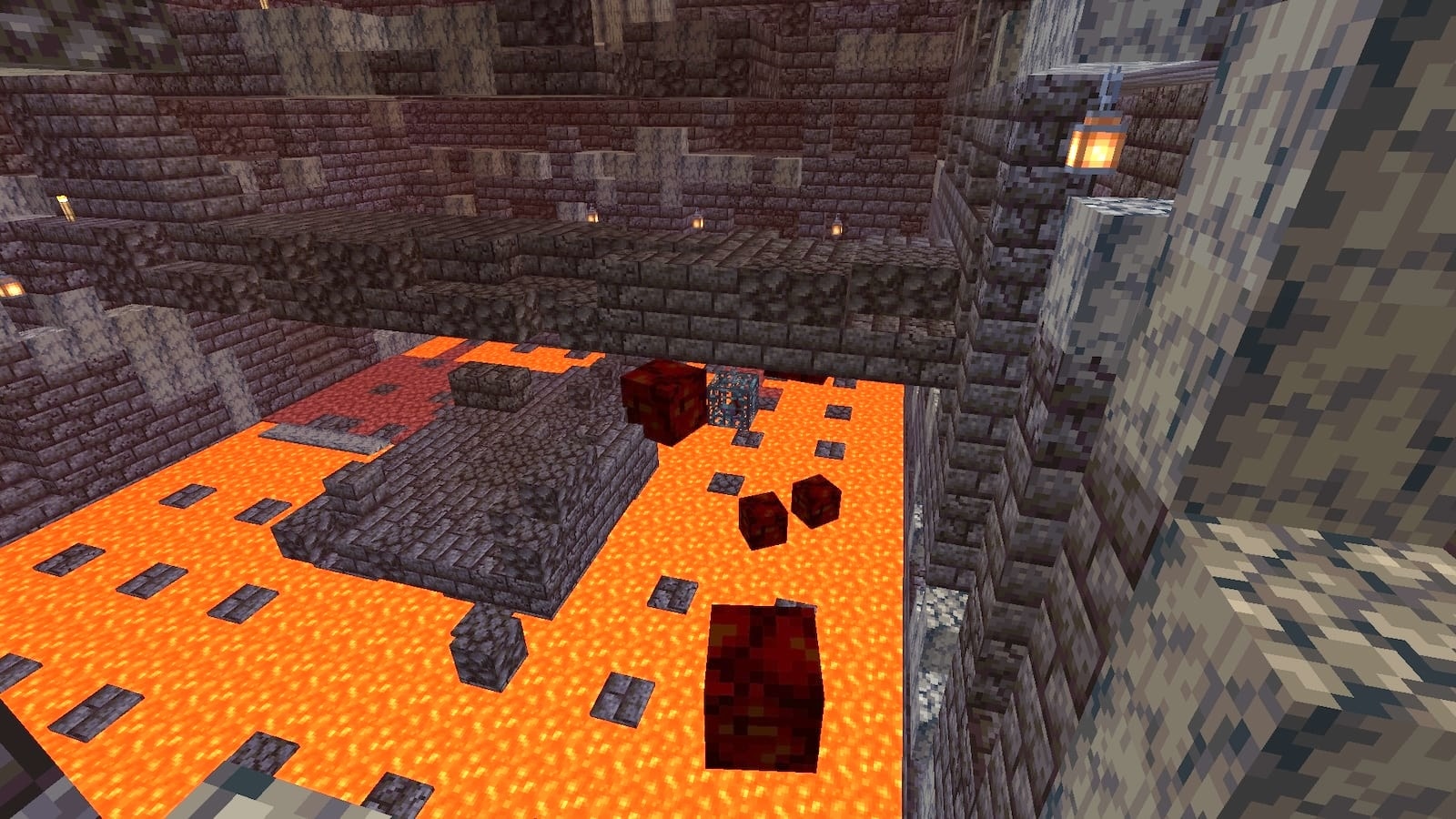 周りの見えている溶岩は埋めました。ネザーラックの下はまだ溶岩です。
