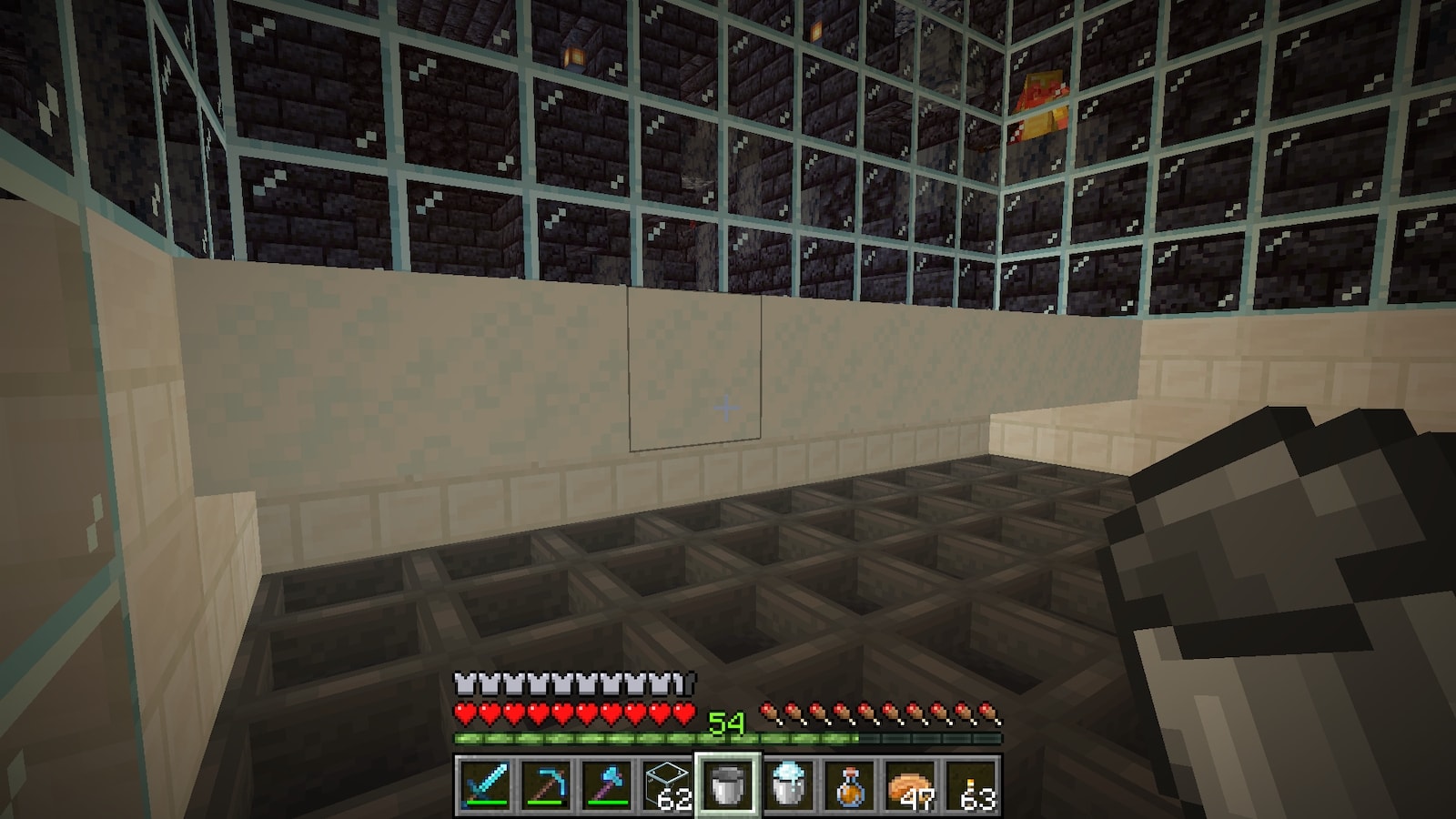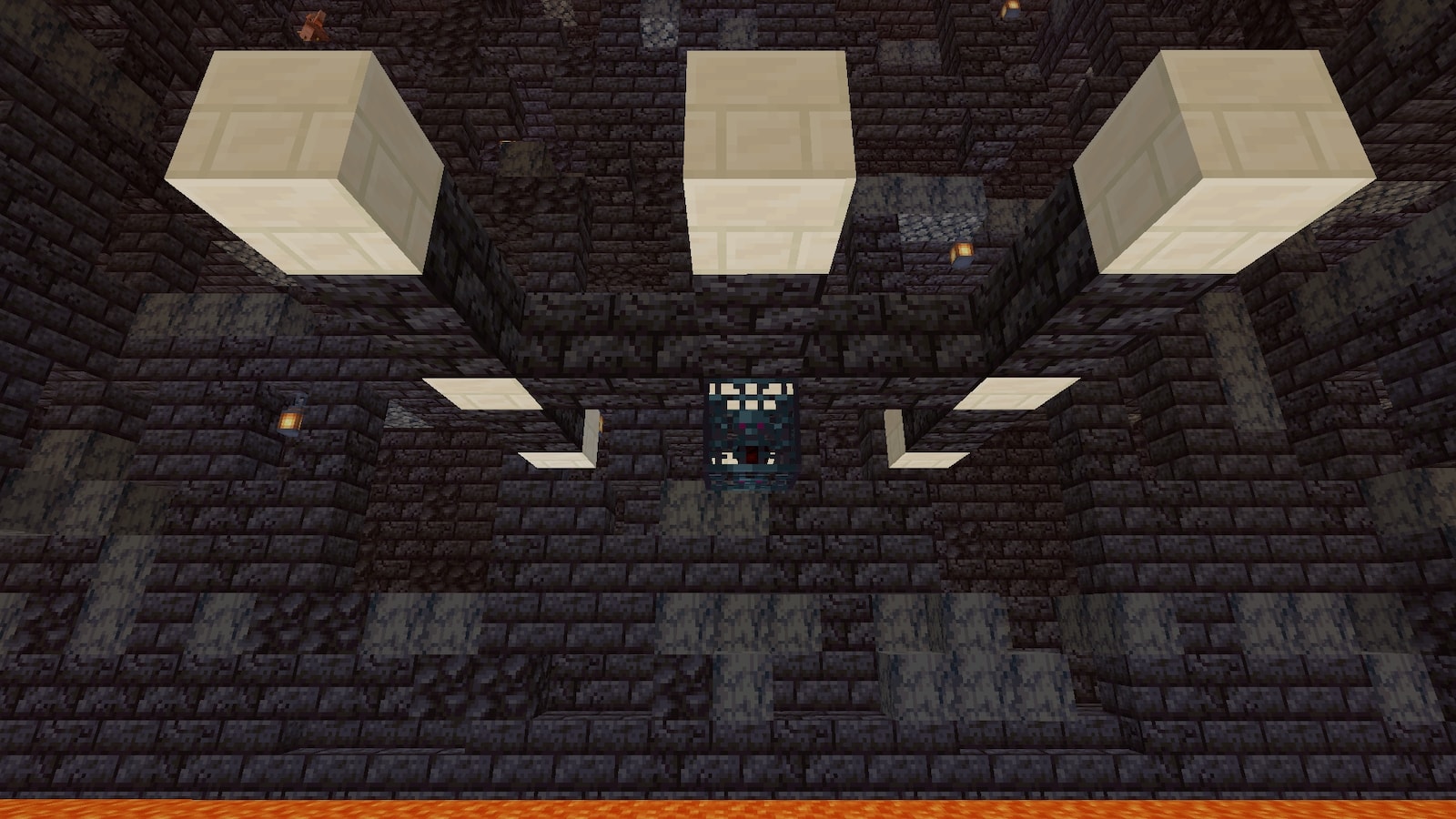クリエイティブで作っていたときは気が付きませんでしたが、床のブロックの2つ下がこの要塞の底でした。この下は6マスくらい溶岩になっていました。これも個々の要塞によって違うのかもしれませんが、溶岩潰すの面倒だな。