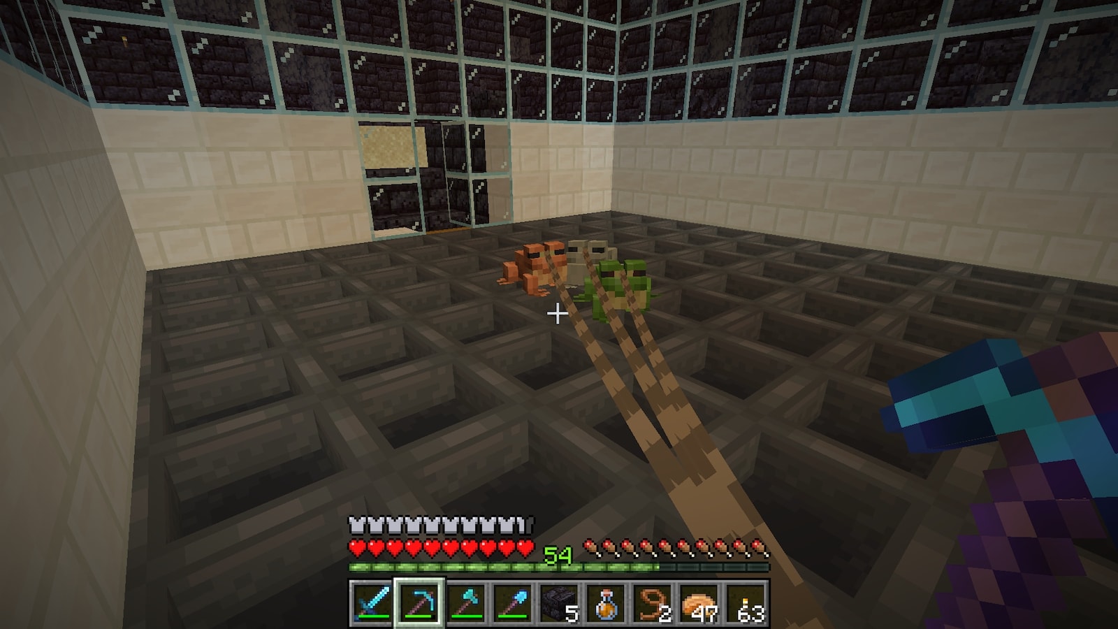 前回は、カエルの繁殖に成功し、その勢いでマグマキューブトラップを作ろうとしましたが材料が足らず断念。エンドの闘技場がほぼ完成したのでウィザーを討伐。ウィザーの攻撃で黒曜石タワーがえぐれました。