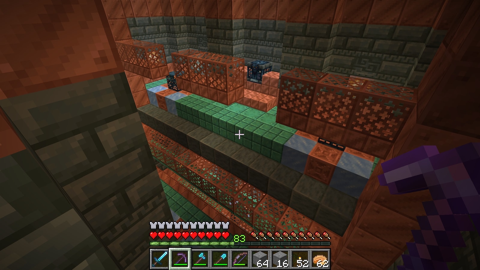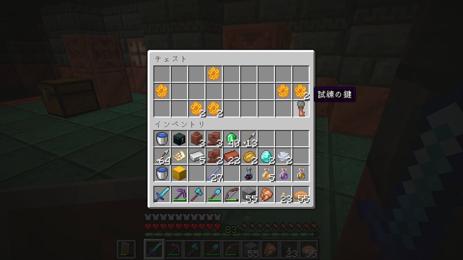 何時間もブロックを削ってるだけでは飽きてくる(というかブログの更新ができない)ので、1.21 の新要素である「トライアルチャンバー」に行ってみようと思います。
