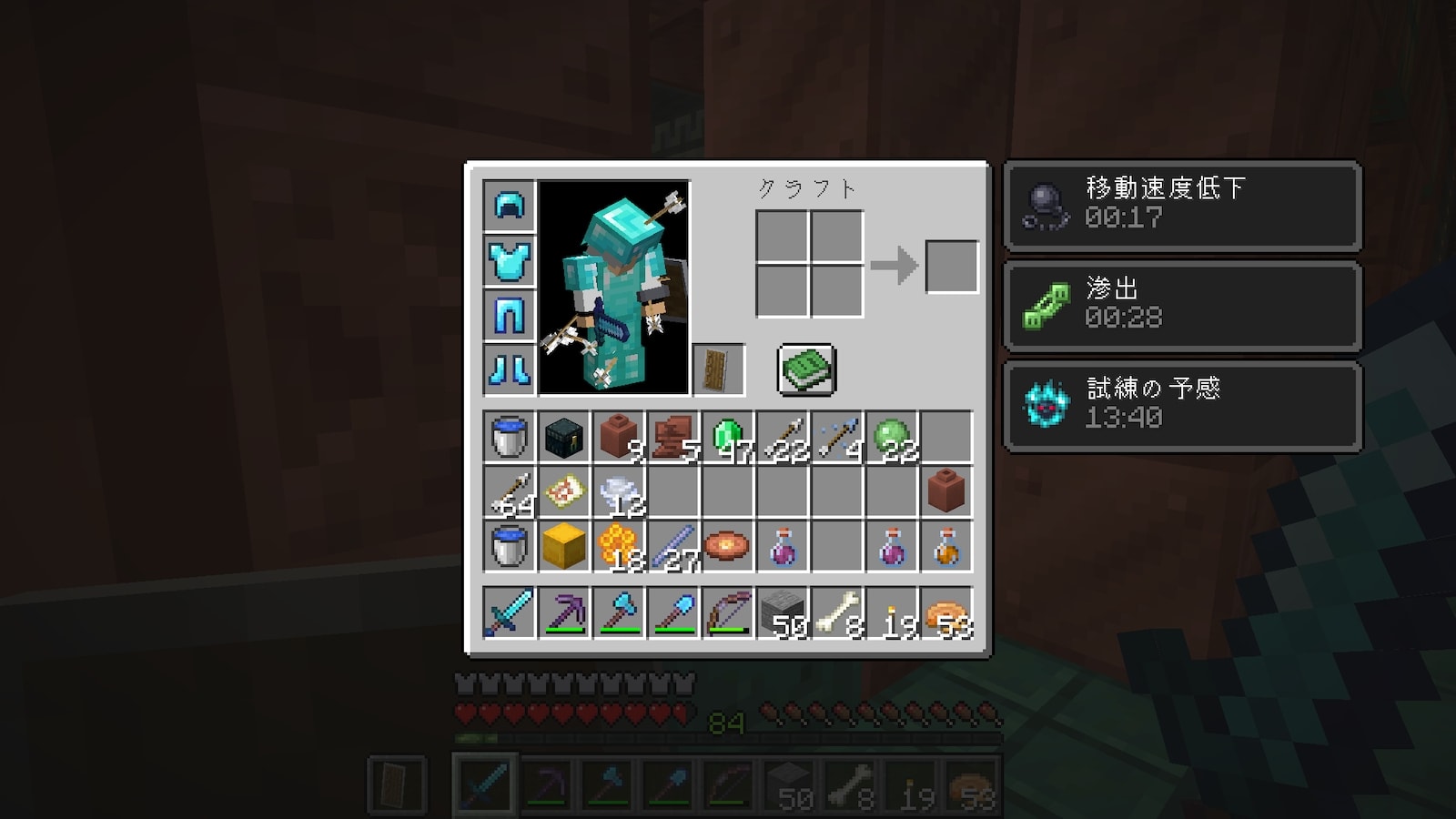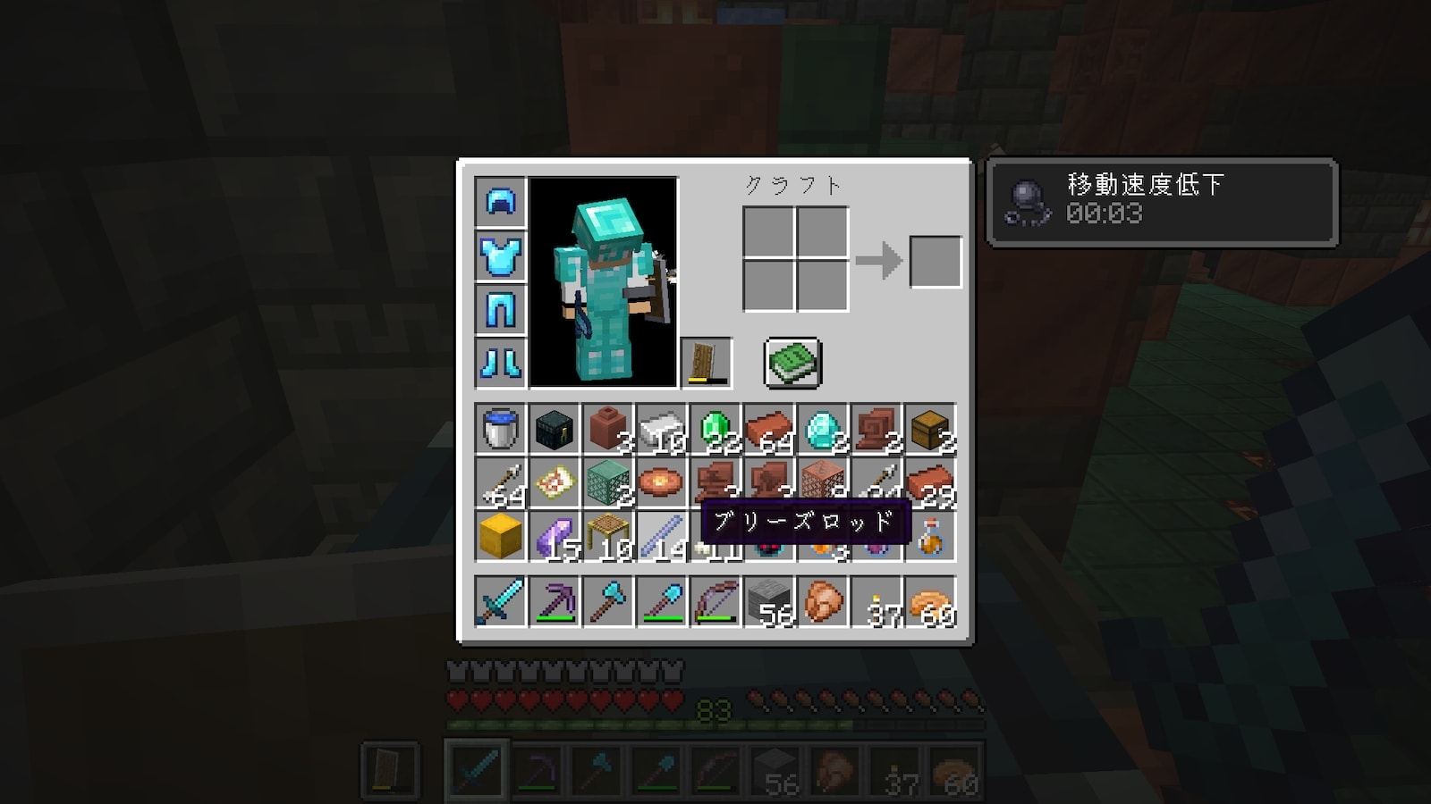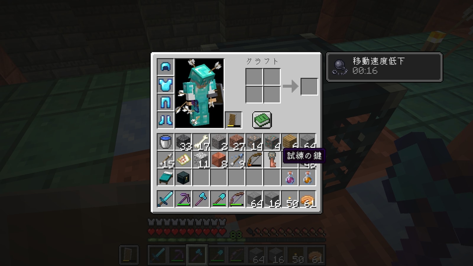 他のブロックみたいに一瞬で破壊できるわけではありませんが、少しだけ速くなるので絶対使ったほうが良いです。なんで使わなかったんだろう。