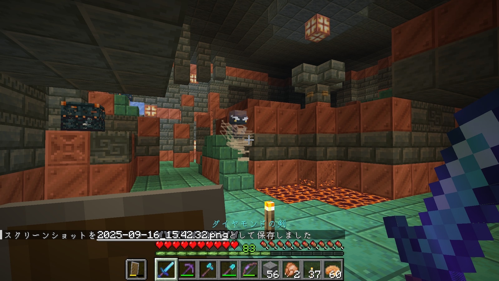 なんか定期的に燃えるなぁと思ってたら、頭上からファイアチャージやポーションが降ってきていました。だいぶ邪魔w