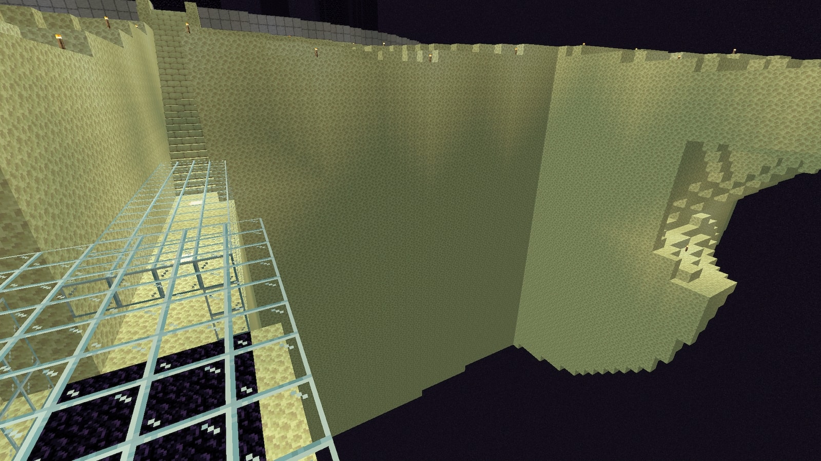 エンダーマントラップは一応使えますが、落下ダメージでエンダーマンが陸地へワープしてしまうので、ワープ範囲の32マスを削り落とします。