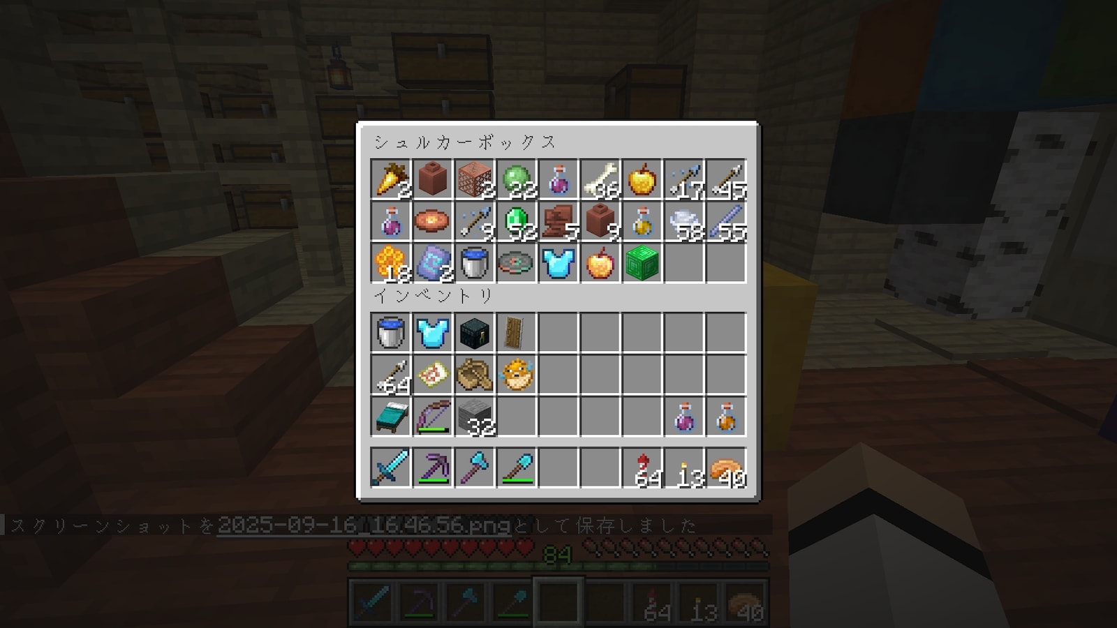 ラージチェスト6個がいっぱいになりました。