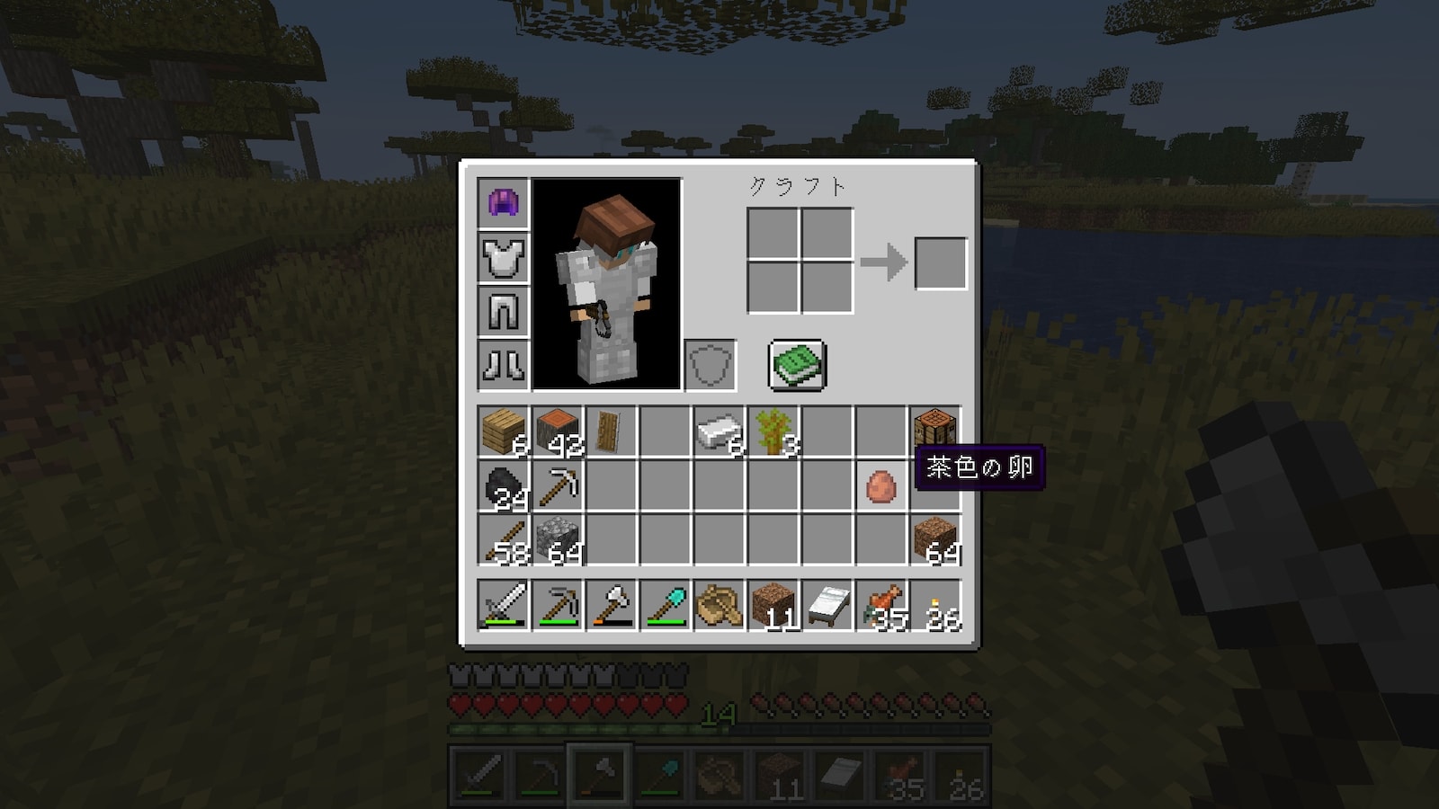サバンナでいつの間にか茶色の卵を拾っていました。あの新色ニワトリの卵かな。