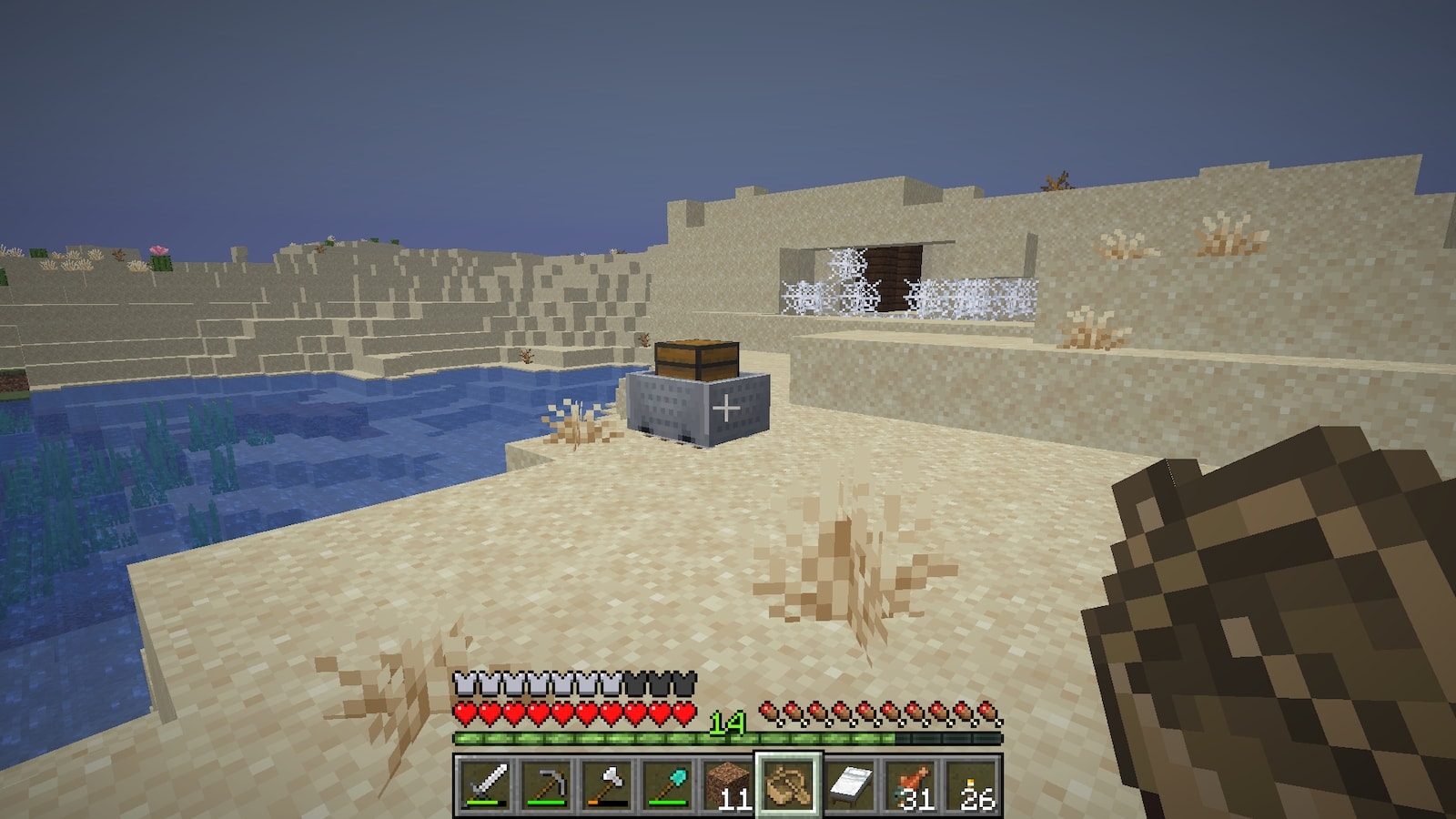 廃坑ではチェストが一個しか見つけられませんでした。スイカの種とカボチャの種があったので育てようと思います。