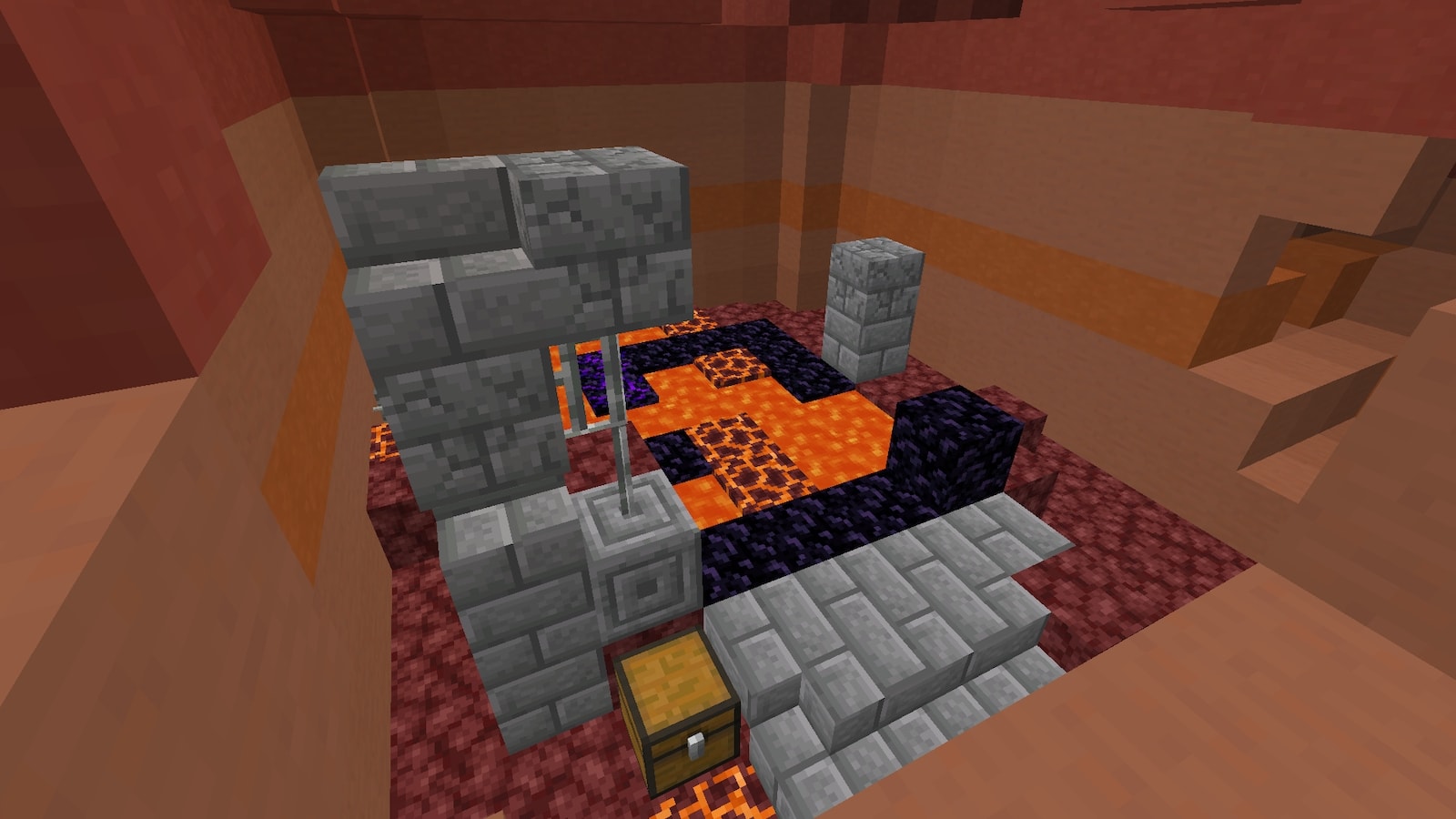 メサの中に壊れたネザーゲートがありました。メサの中にあるっていうだけでレア感が出ます。