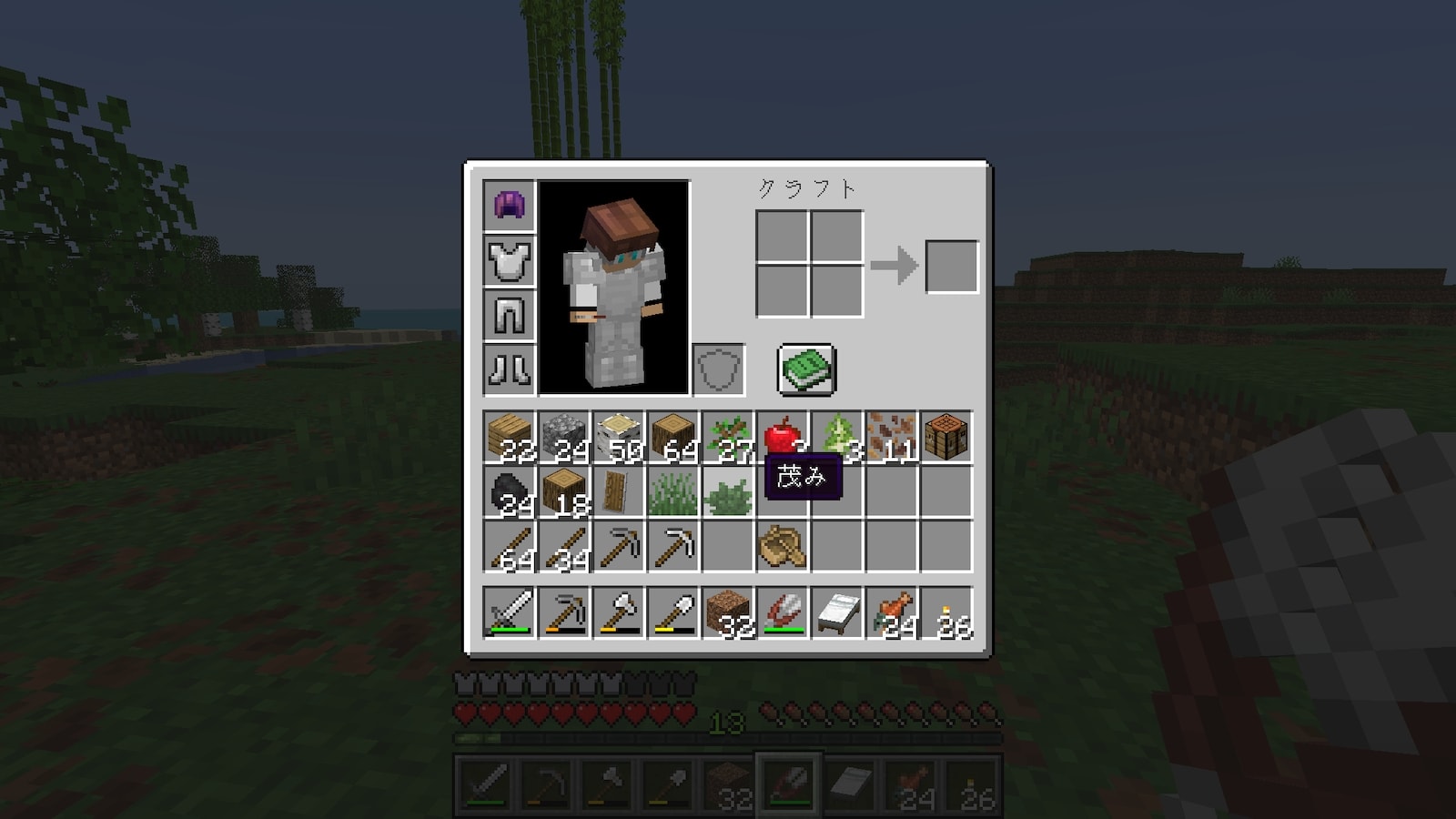 木材を4種類使いたいので、アカシアとジャングルの木を集めに。