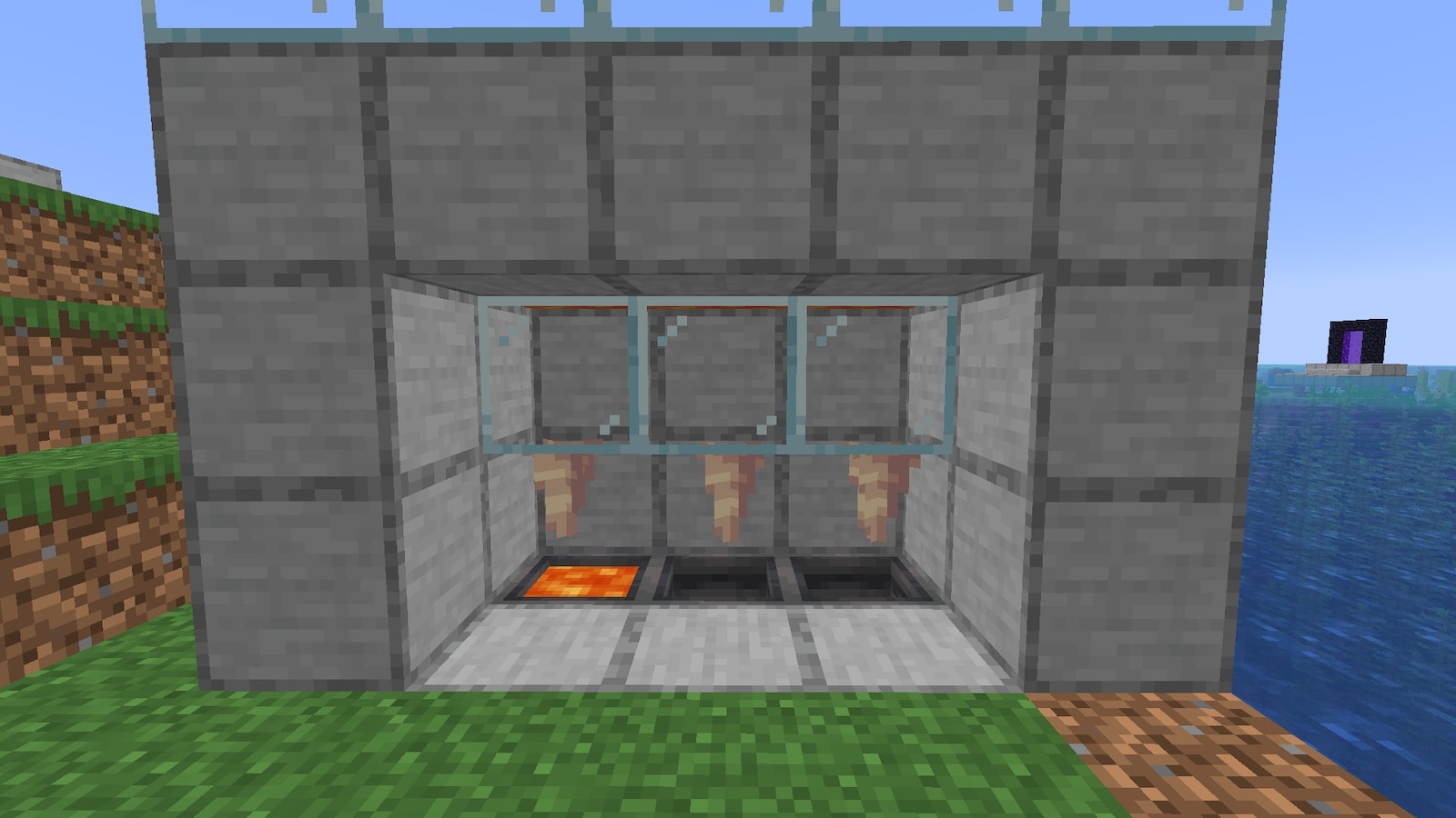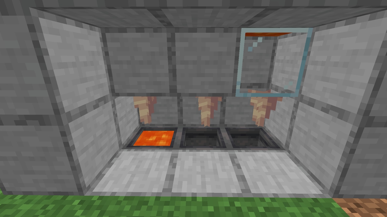 ガラスブロックに変えた瞬間になぜか溶岩がたまりました。