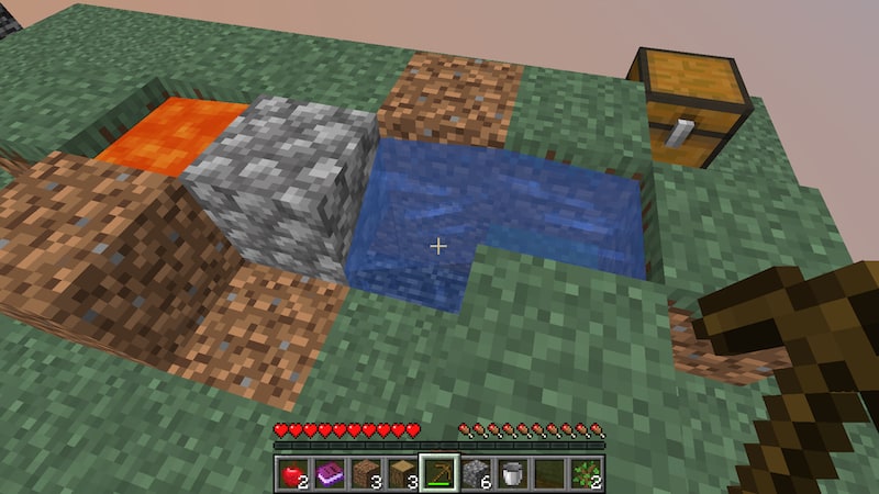 右にあったチェストには「溶岩入りバケツ」と「氷」です。丸石製造機用ですね。