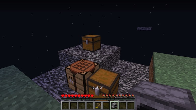 ちなみにもう一つの島をよく見てみると、エンドポータルの台座?が見えます。エンドにも行くことになるのでしょうか?
